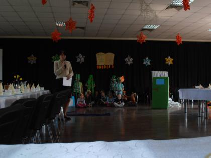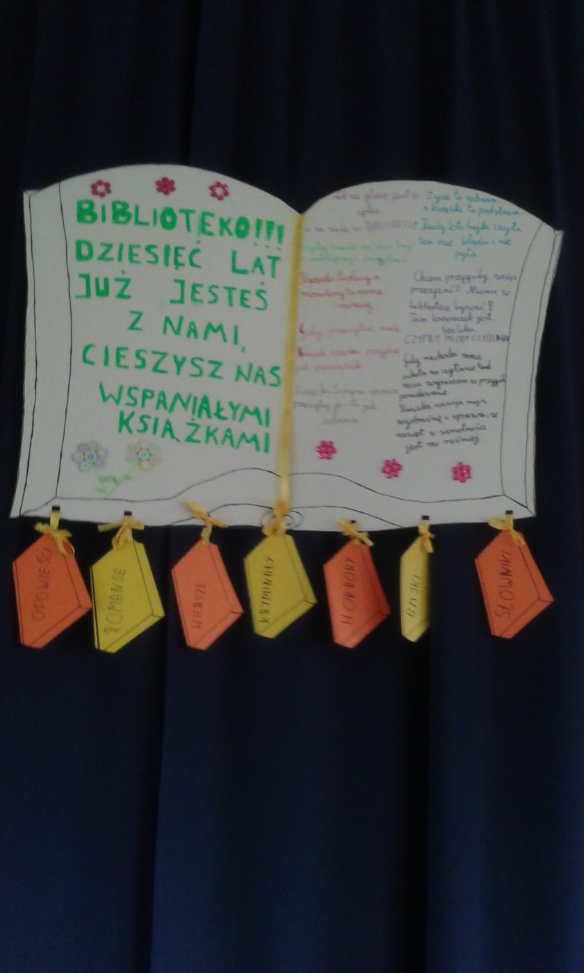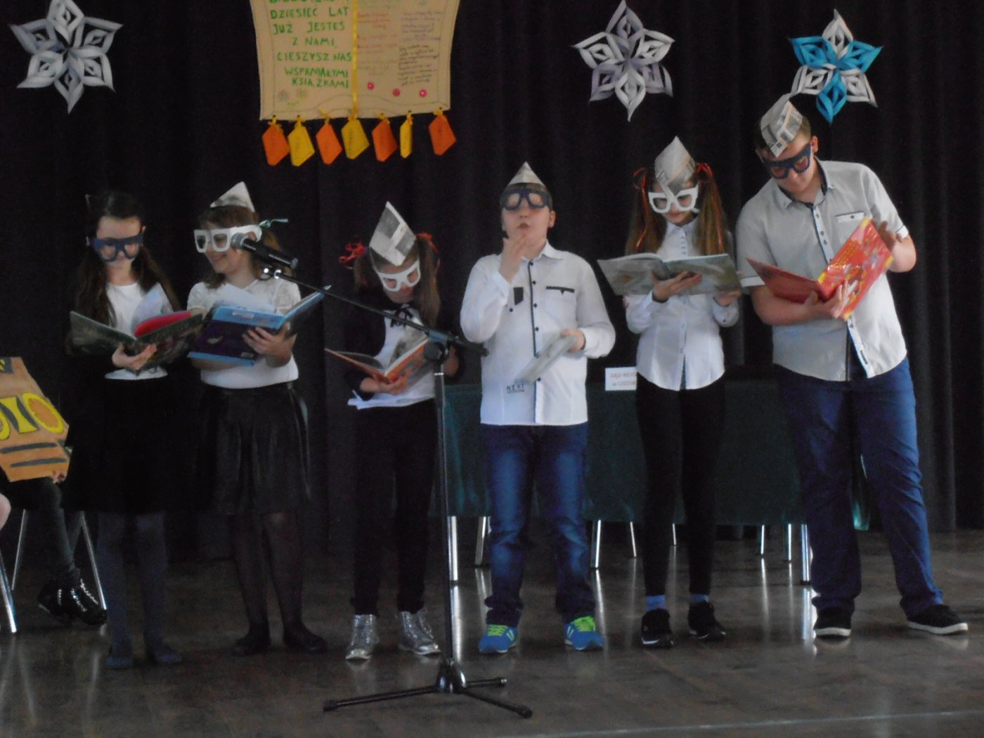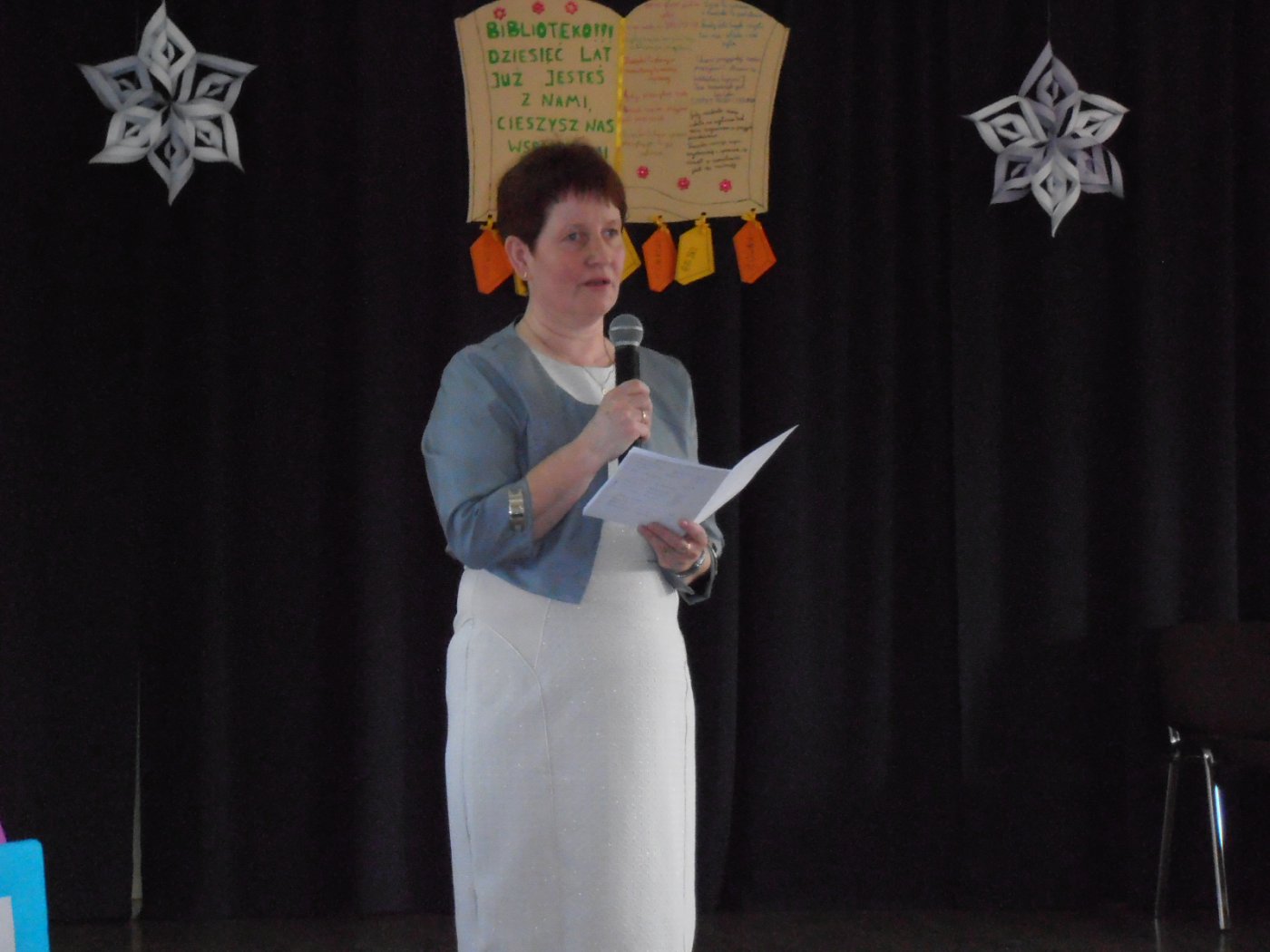 Po uroczystym powitaniu bibliotekarka Jolanta Piosek pokrótce przypomniała historię powstania biblioteki oraz najważniejsze wydarzenia z życia placówki. Można było również przejrzeć kronikę oraz wystawę fotografii ze spotkań autorskich.