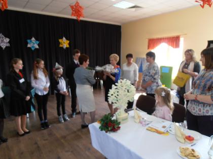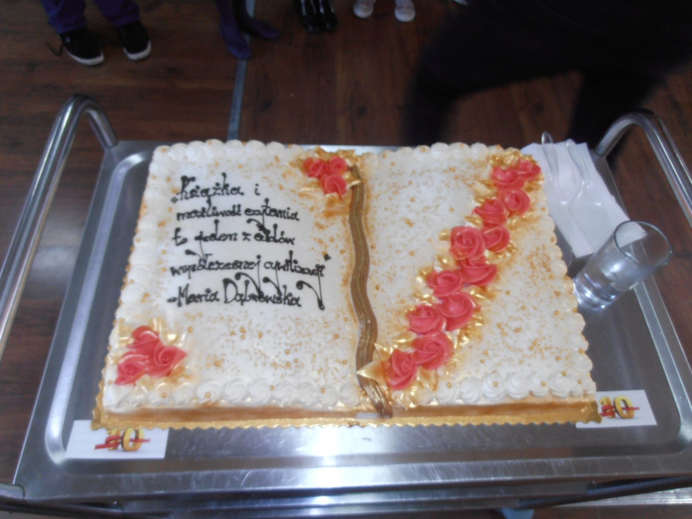 Biblioteka od zaproszonych gości otrzymała wiele prezentów, gratulacji i życzeń. Za wszystkie bardzo dziękujemy. Będą one miłą pamiątką tego dnia i ozdobą biblioteki na dalsze lata.