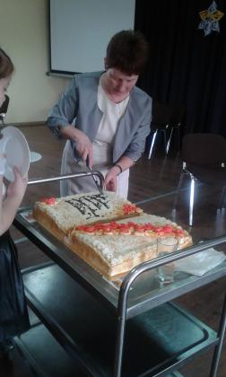 Zwieńczeniem 10 urodzin Biblioteki w Lisowicach był poczęstunek - wspaniały tort.