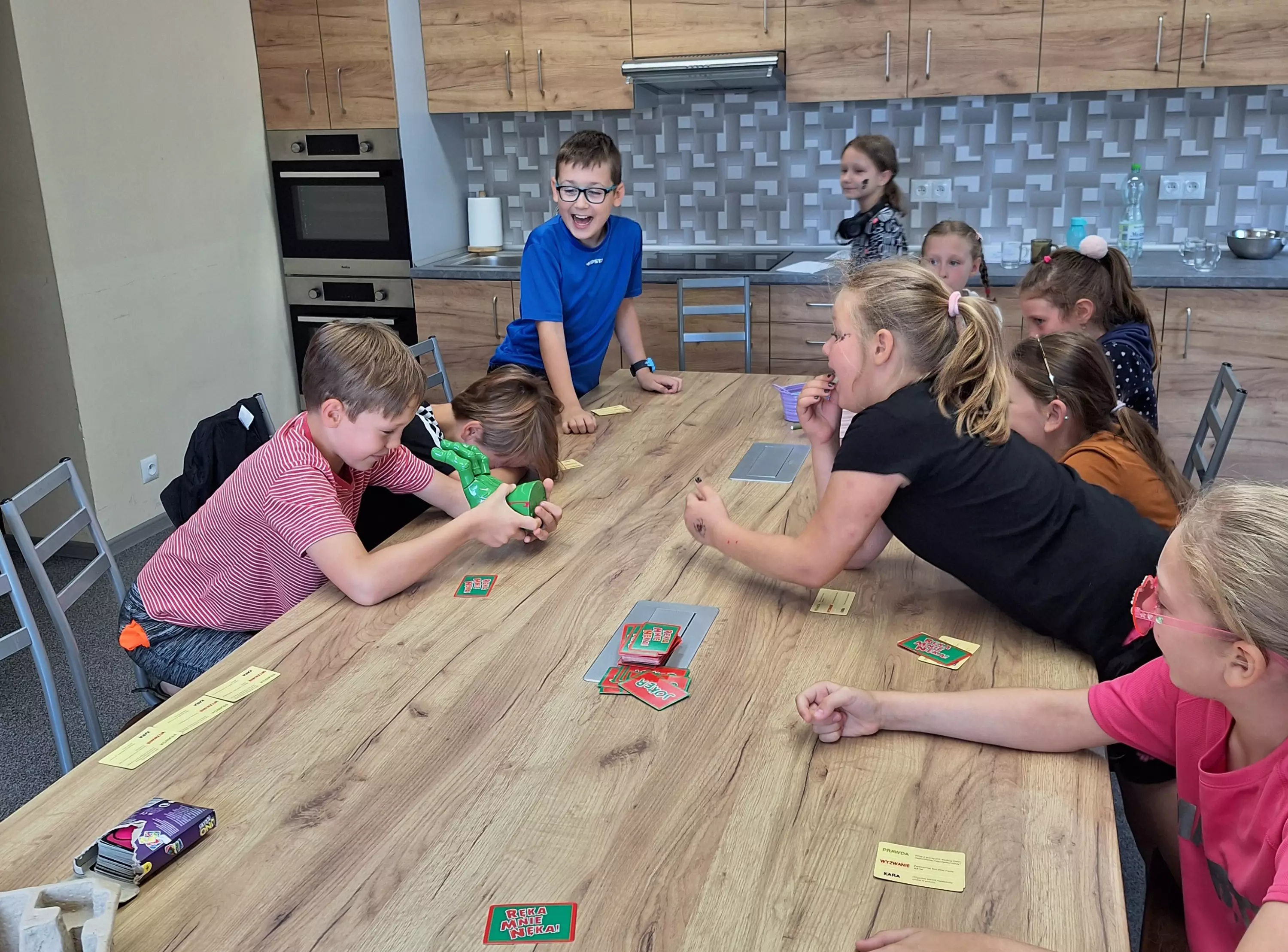 Piątkowe zajęcia znów odbyły się z grami planszowymi i stolikowymi. Tym razem była to gra "Ręka mnie nęka" - dłoń obracającą się na stole i wyznaczającą gracza do odpowiedzi.