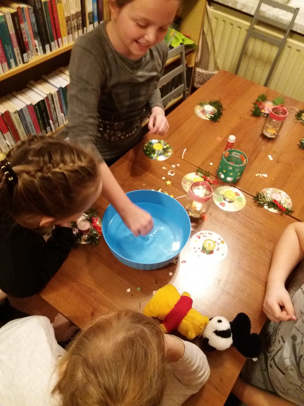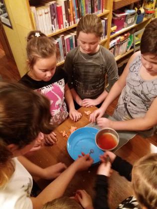 W andrzejkowy wieczór dzieci spotkały się na zajęciach w bibliotece, podczas których wykonały świeczniki-stroiki z płyt CD. Każda praca została pięknie udekorowana. Następnie, przy blasku świec i muzyce, wróżono sobie lejąc wosk przez dziurkę od klucza oraz próbując położyć igłę na wodzie (co nie było łatwe). Wieczór zapewne był wyjątkowy, pełen humoru i dobrej zabawy.