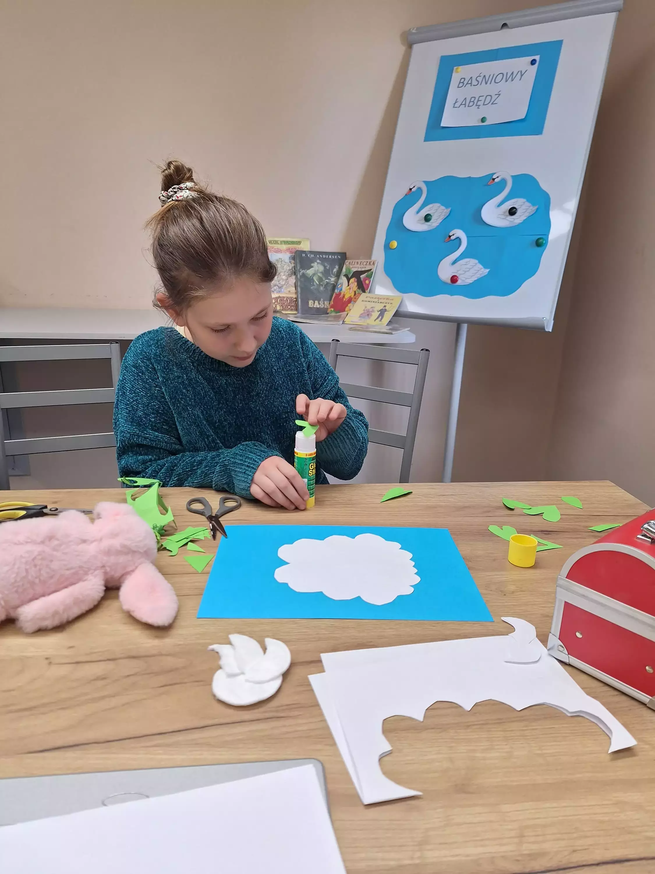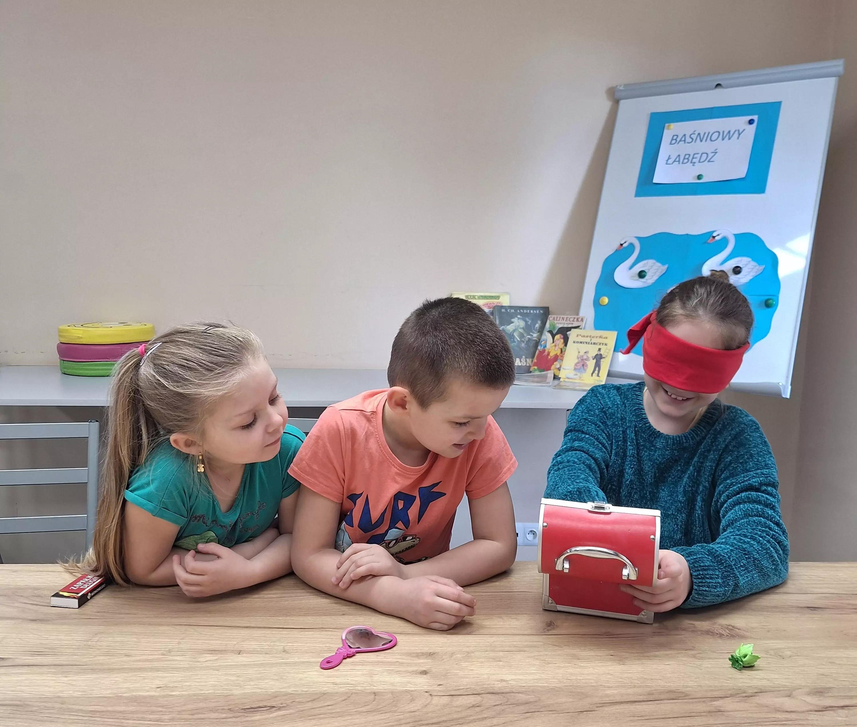 Na wczorajszych zajęciach literacko-plastycznych pt. "Baśniowy Łabędź” odbyliśmy podróż po magicznym świecie baśni Hansa Christiana Andersena. Podczas lotu magicznym kufrem dzieci wzięły udział w zabawach związanych z fabułą baśni, wyobrażając sobie opisywane miejsca i postacie.