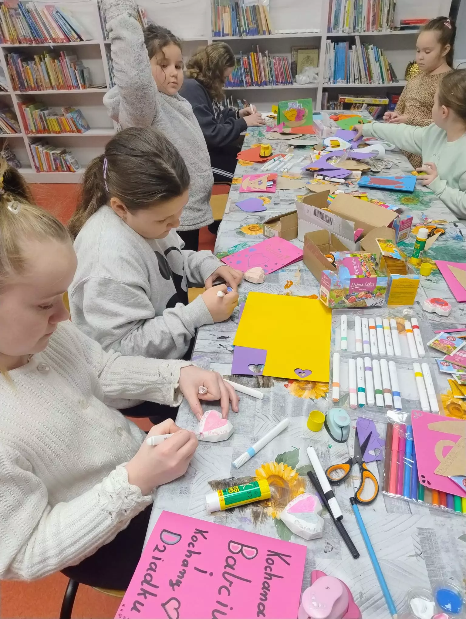 Kolejne zajęcia w bibliotece w Łagiewnikach Małych już za nami. Tym razem dzieci przygotowywały niespodzianki dla swoich babć i dziadków. Dzień Babci i Dziadka to okazja, by podziękować im za ich miłość, oddanie i czas. Możemy wyrazić im to poprzez poezję m.in. wierszem "Nasza Babcia" M.Terlikowskiej, "Mój Dziadzio", "Babcia" A.Kamieńskiej czy "Dzień Dziadka" W.Chotomskiej. Dzieci dla swoich babć i dziadków wykonywały piękne laurki oraz magnesy na lodówkę w kształcie serca.