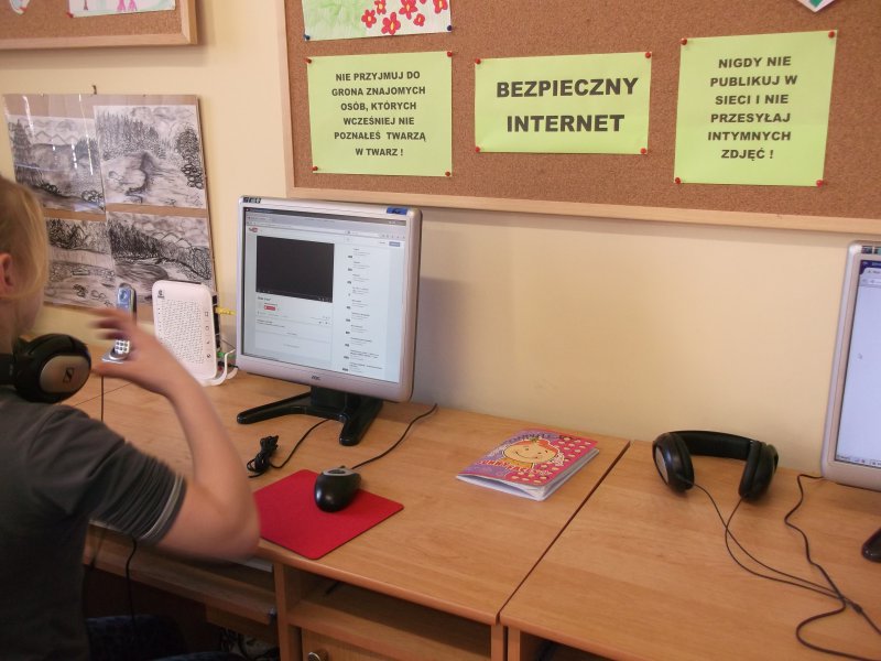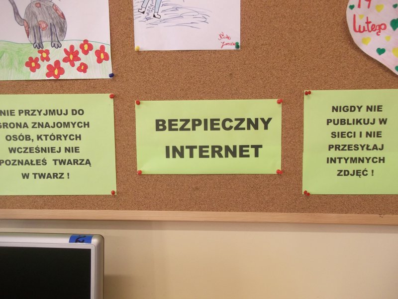 Na naszej gazetce bibliotecznej w trakcie zajęcia zostały zamieszczone teksty z przestrogami oraz adres i nr telefonu, pod który każdy może dzwonić, jeżeli poczuje się zagrożony lub nagabywany w sieci.