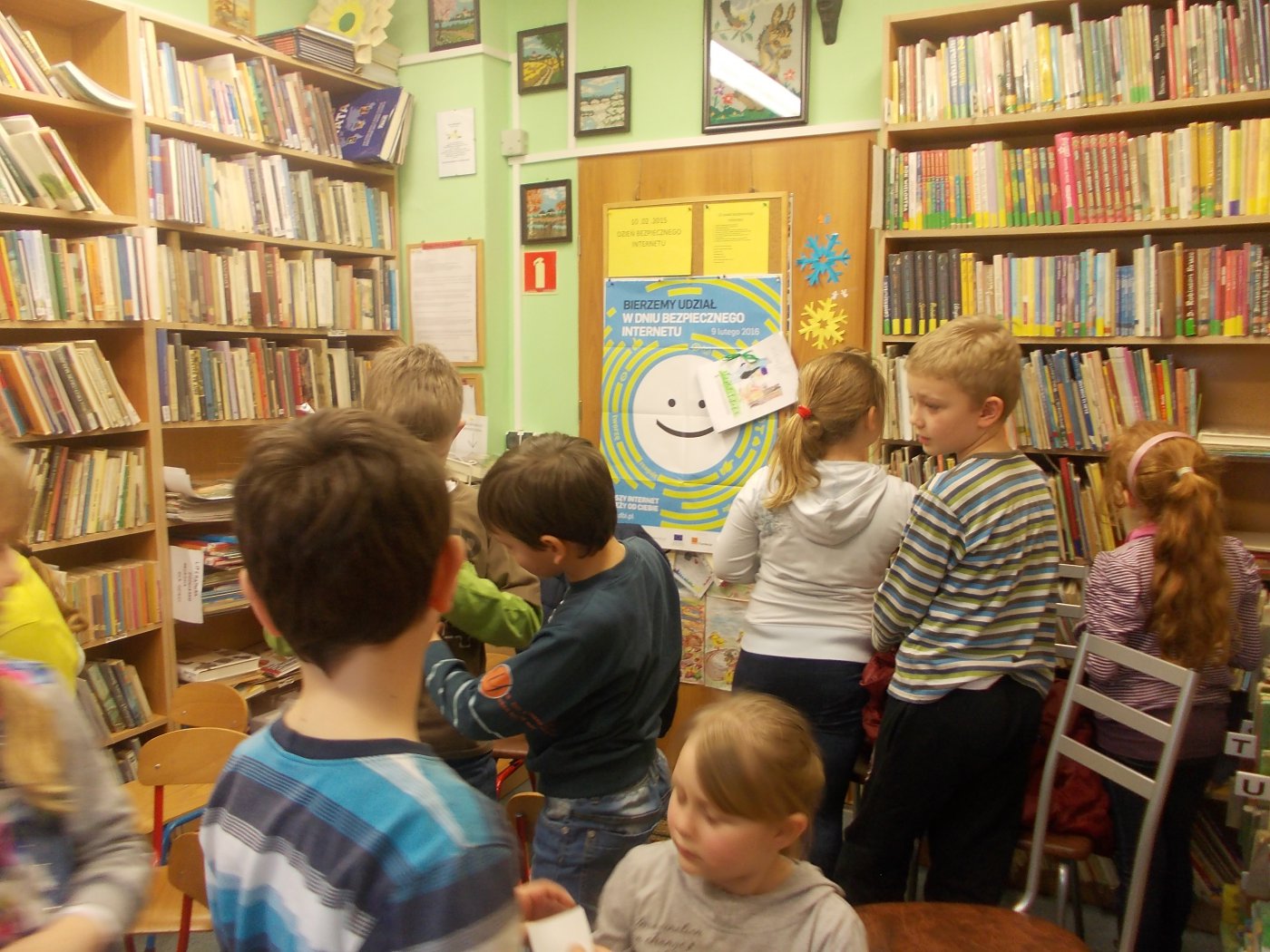 Również uczniowie klasy drugiej szkoły podstawowej z Łagiewnik Małych wraz z wychowawczynią panią Justyną Pruską brali udział w lekcji bibliotecznej na temat bezpiecznego Internetu. Dzieci chętnie włączały się do rozmowy o zasadach bezpieczeństwa korzystania z telefonów komórkowych, oraz Internetu. Także obejrzały pouczające filmiki "Owce w sieci". Otrzymały również naklejki potwierdzające udział w spotkaniu z okazji Dnia Bezpiecznego Internetu. Na pożegnanie wykonano grupowe zdjęcie.