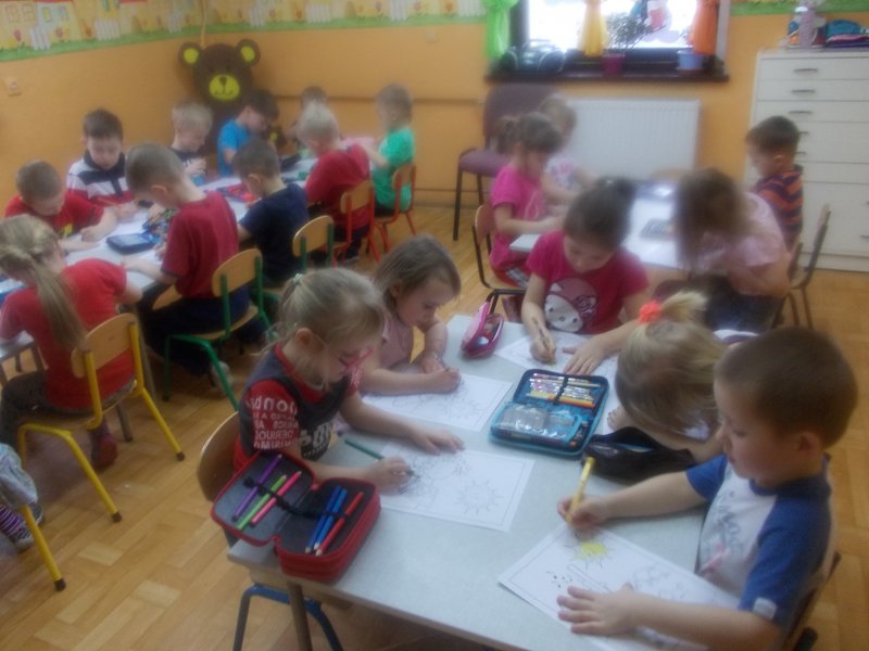 Uczestnicy zajęć odpowiadali na pytania związane z treścią filmów. Na zakończenie dzieci pokolorowały ilustracje z owieczkami. W spotkaniu brało udział 22 przedszkolaków.