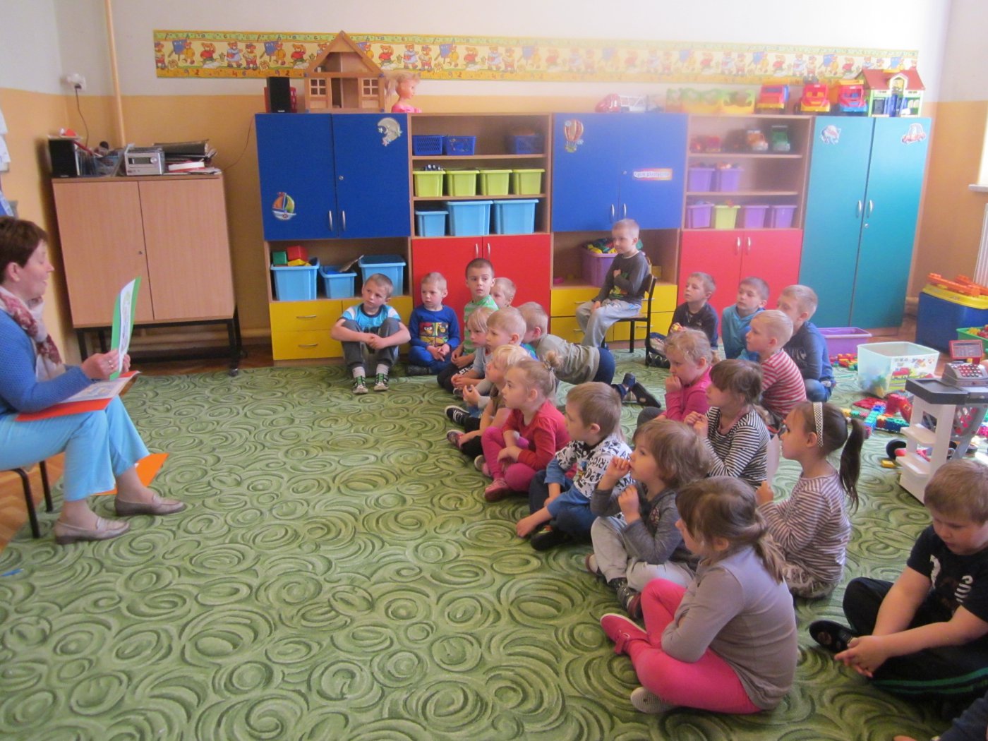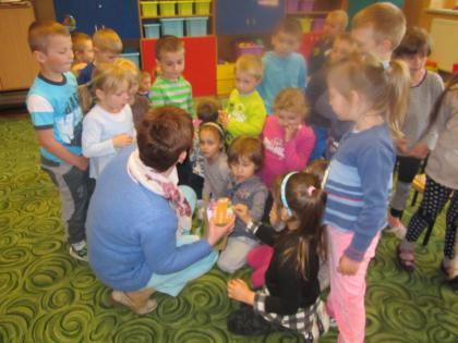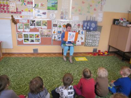 Z okazji Tygodnia Bibliotek i Dnia Bibliotekarza dzieci z oddziału przedszkolnego w Lisowicach wysłuchały bajkę pt. :”Czerwony Kapturek” czytaną przez panią Jolantę Piosek .