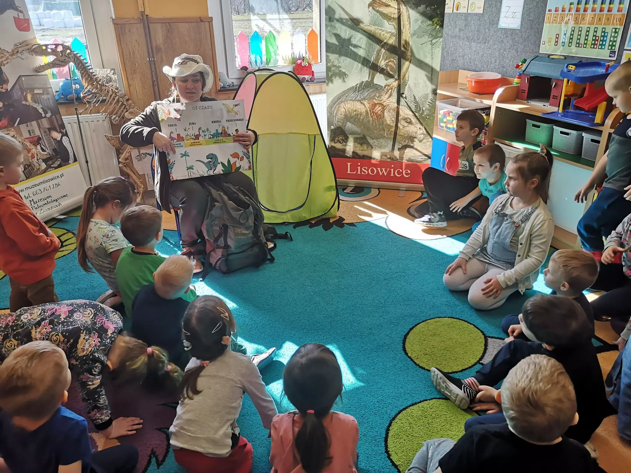 Tym razem z okazji Dnia Dinozaura wybraliśmy się do przedszkoli, aby poprzez zabawę dowiedzieć się więcej o naszych skamieniałych skarbach i innych ciekawostkach ze świata paleontologii. Na przełomie lutego i marca ( 27.II. - 16.III.) dotarliśmy do przedszkolaków z: Pawonkowa, Łagiewnik Małych, Gwoździan, Lisowic, Łagiewnik Wielkich oraz Kośmider.