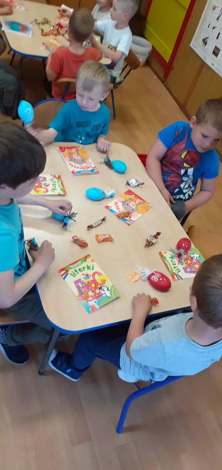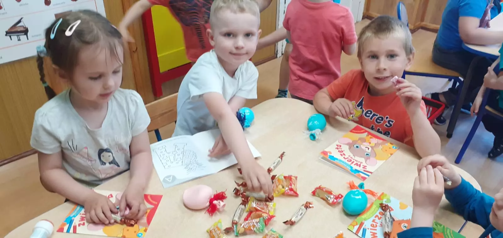 Z tej okazji Pani Bogusia z biblioteki w Kośmidrach odwiedziła dzieci z zaprzyjaźnionego przedszkola. Spotkanie rozpoczęło się głośnym czytaniem, oglądaniem książeczek oraz pogadanką na temat święta. Każdy przedszkolak otrzymał gniotka, książeczkę do kolorowania oraz słodki poczęstunek. Największą radością było jednak wspólne wyjście na plac zabaw i dmuchanie baniek.