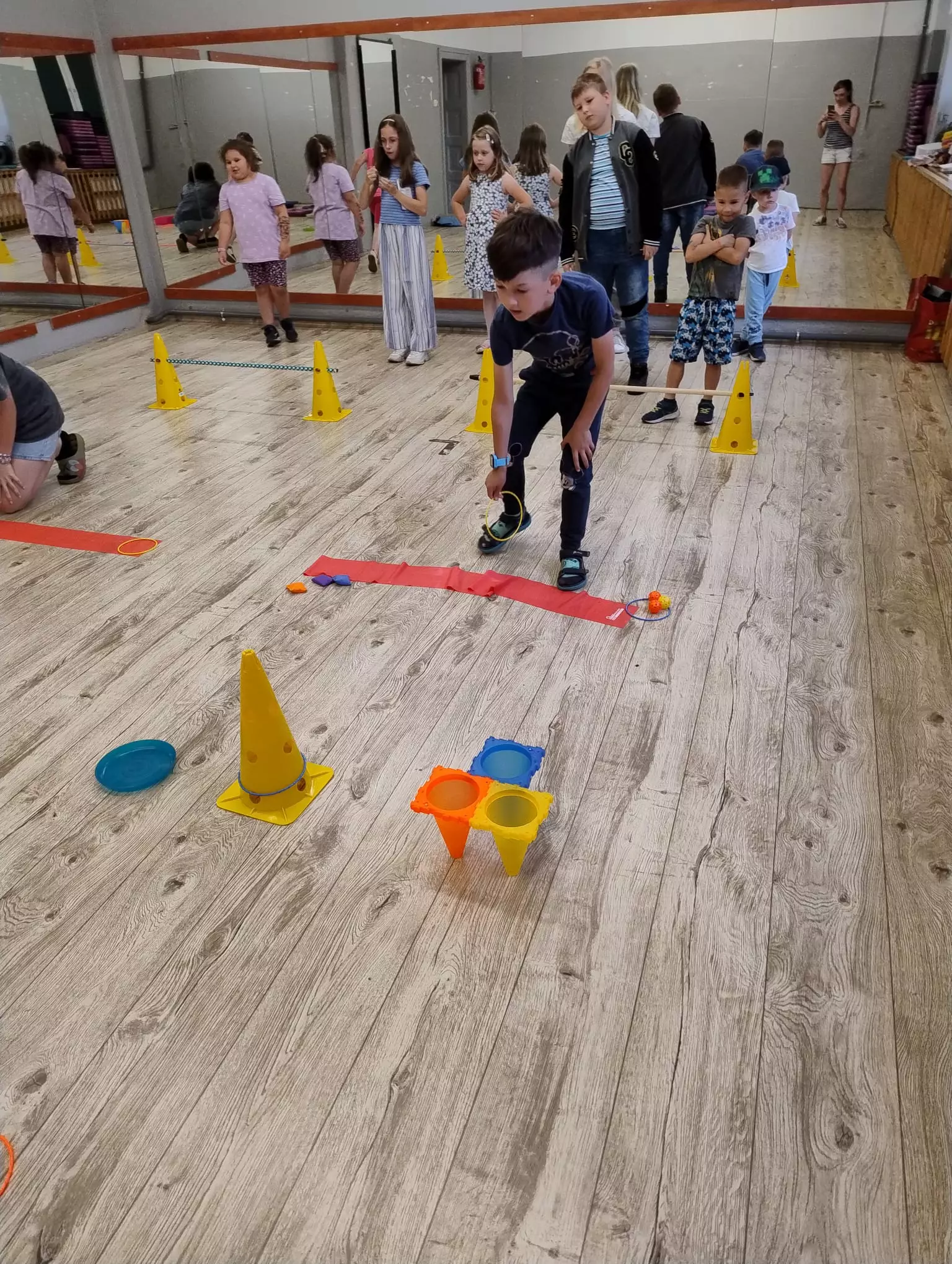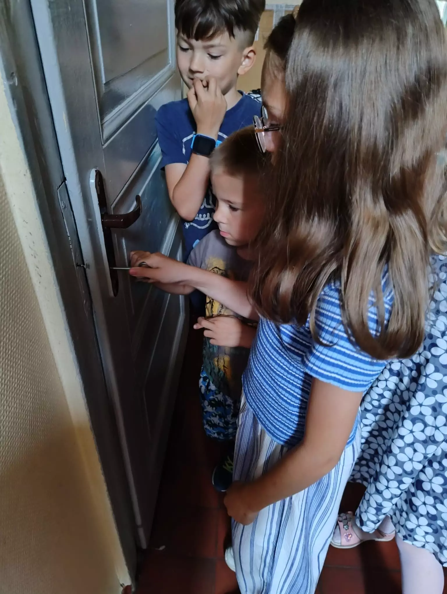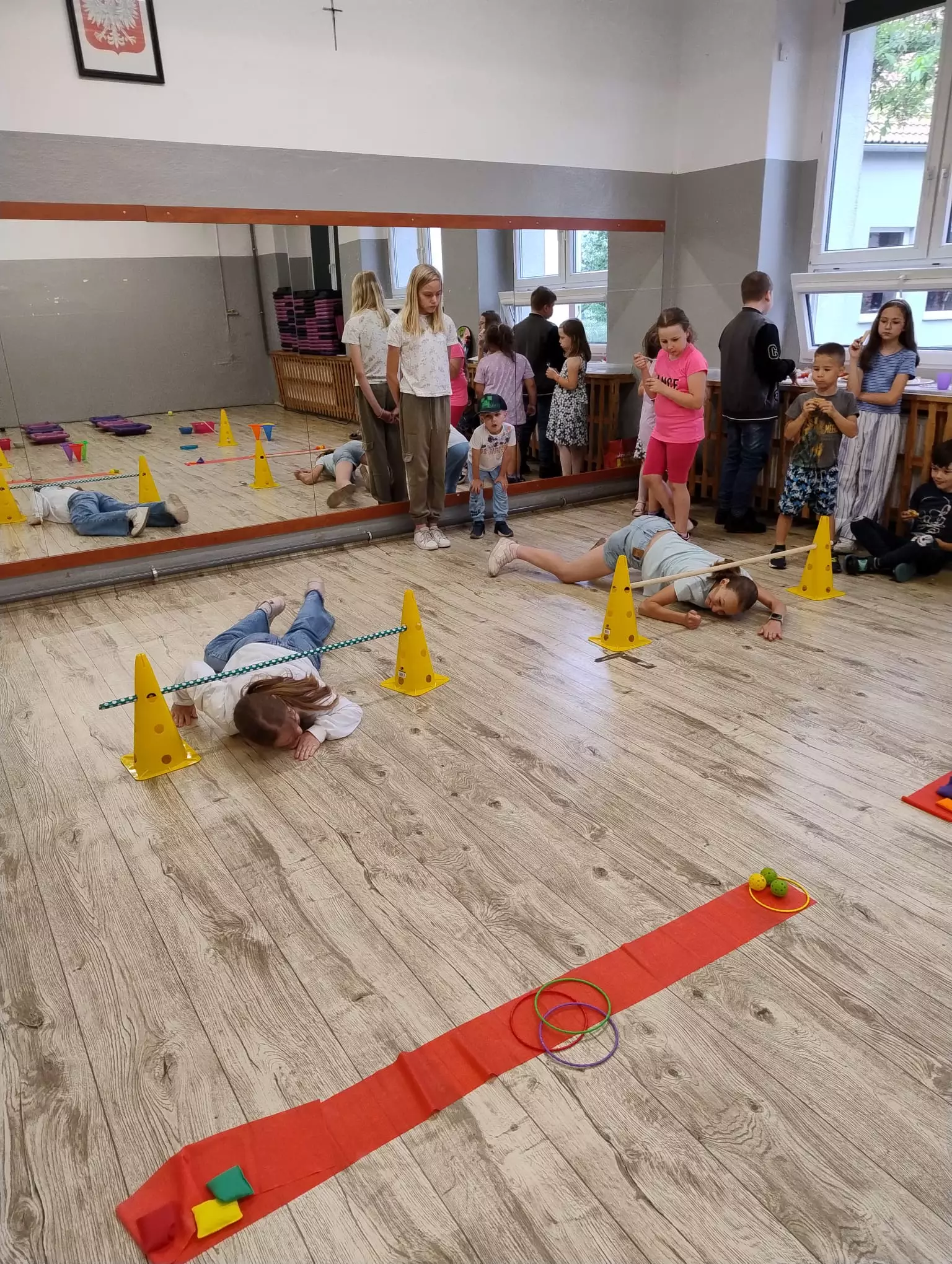 Na piątkowych zajęciach w Filii Bibliotecznej w Łagiewnikach Małych świętowaliśmy Dzień Dziecka. Tym razem to dzieci decydowały, którą książkę będziemy czytać. Trafiło na opowiadanie pisarki Paulette Bourgeois pt. "Franklin i nowy przyjaciel". W tym dniu na dzieci czekała niespodzianka, która znajdowała się w sali obok zamkniętej na klucz. Klucz znajdował się w szufladzie, która również była zamknięta, ale na kłódkę z kodem. Zadaniem dzieci było zdobycie cyfr kodu poprzez rozwiązywanie zadań ukrytych w bibliotece. Dzieci bez problemu poradziły sobie z tym zadaniem i otworzyły drzwi. Czekał tam na nich tor przeszkód, gra muzyczna oraz małe co nie co.