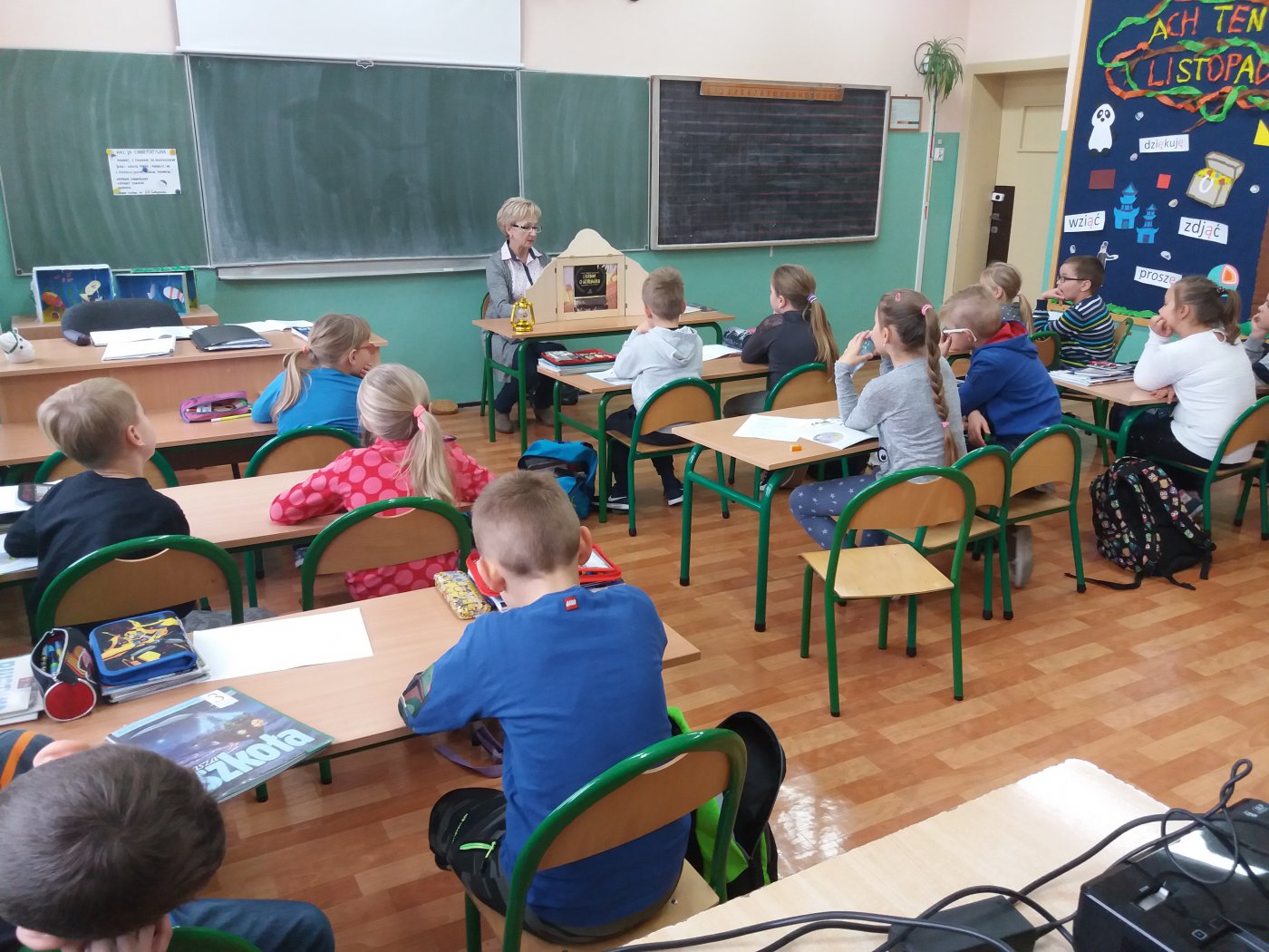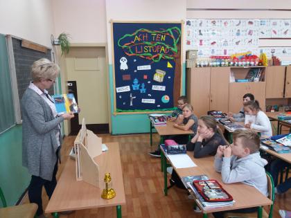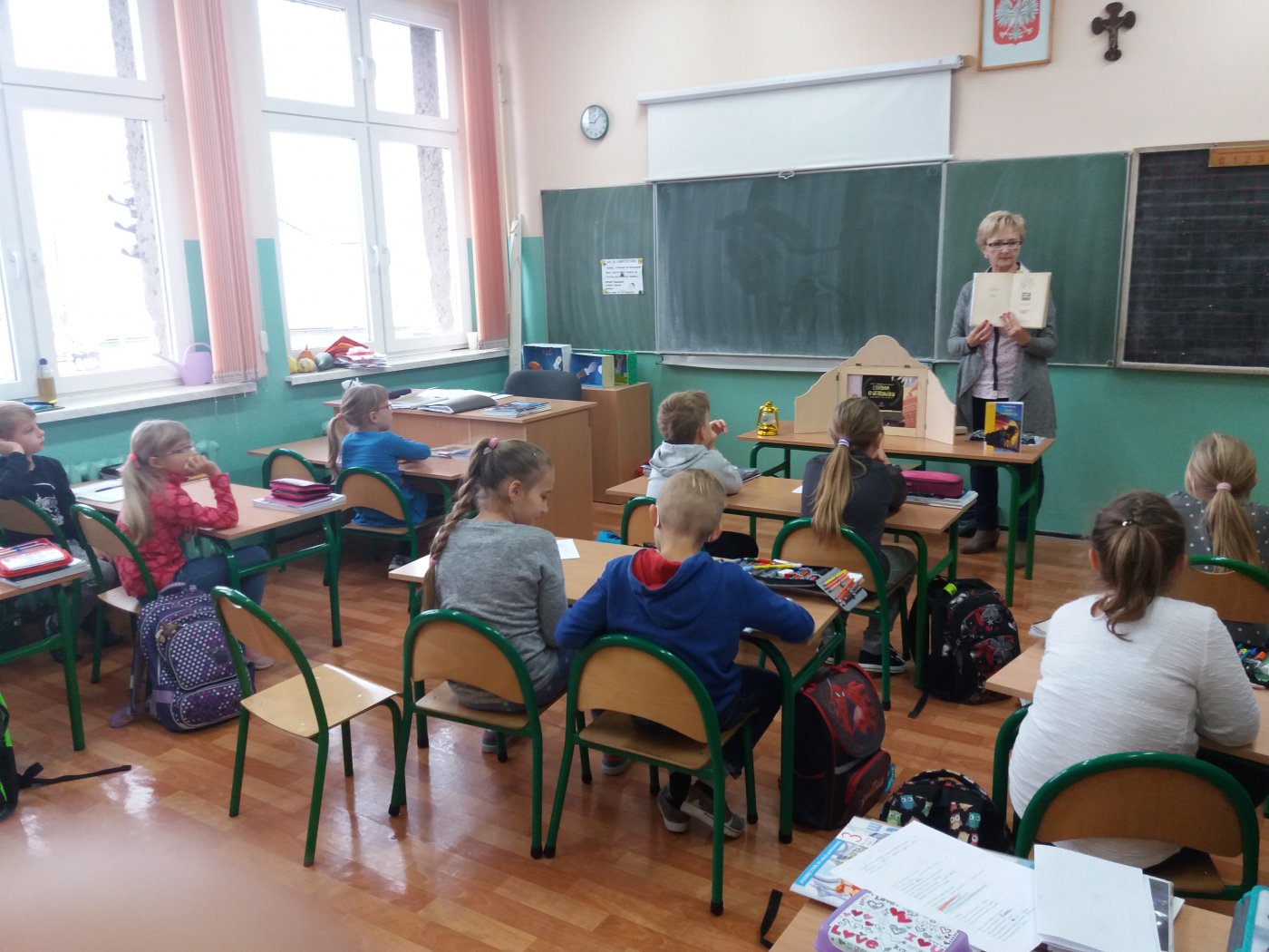Z okazji górniczego święta pani bibliotekarka odwiedziła uczniów kl.III Szkoły Podstawowej w Gwoździanach. Za pomocą teatrzyku kamishibai przedstawiła dzieciom "Legendę o Skarbniku" Juliana Brudzewskiego. Uczniowie zapoznali się również z książkami obrazujących pracę górników w kopalni: Gustawa Morcinka "Łysek z pokładu Idy" i Stanisława Ligonia "Bery i bojki śląskie".