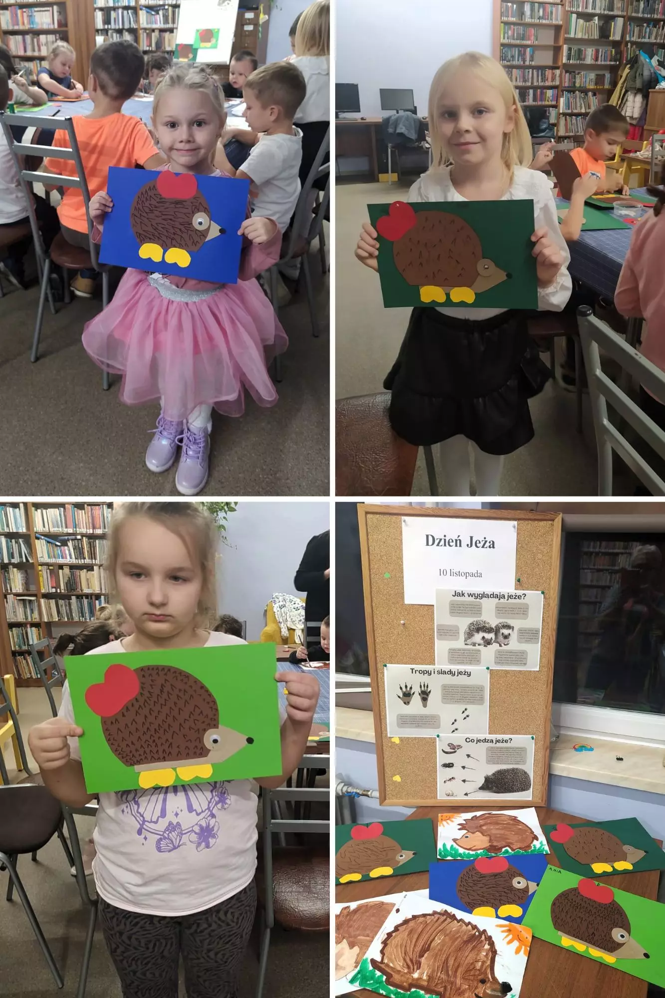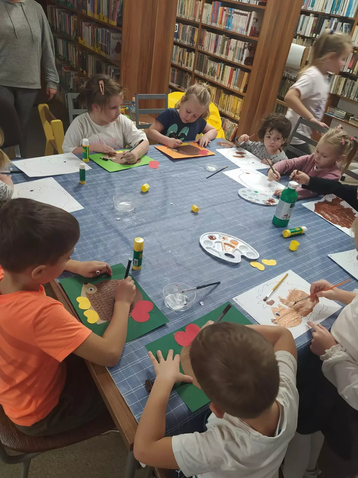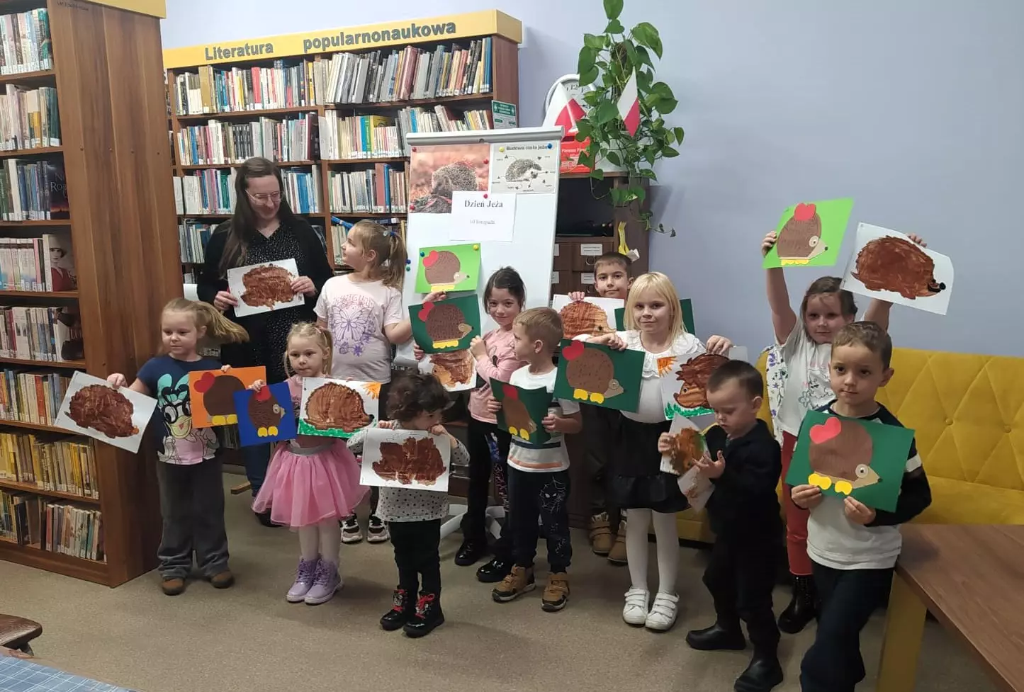 W piątek w bibliotece w Gwoździanach obchodziliśmy Dzień Jeża! Na początku wspólnie przeczytaliśmy książeczkę pt. "Kolczatek" autorstwa Heleny Bechlerowej, która wprowadziła nas w świat tych uroczych stworzeń. Następnie dzieci zrobiły piękne prace plastyczne z jeżami, pełne kolorów i kolców! Później wszyscy zagrali w grę na spostrzegawczość i refleks – było mnóstwo śmiechu i dobrej zabawy. Dzieci dowiedziały się też wielu ciekawostek: co jedzą jeże, jak wygląda ich codzienne życie, jak są zbudowane i jakie zagrożenia na nie czyhają. Na koniec każdy chętnie dzielił się wspomnieniami o swoich spotkaniach z jeżami.