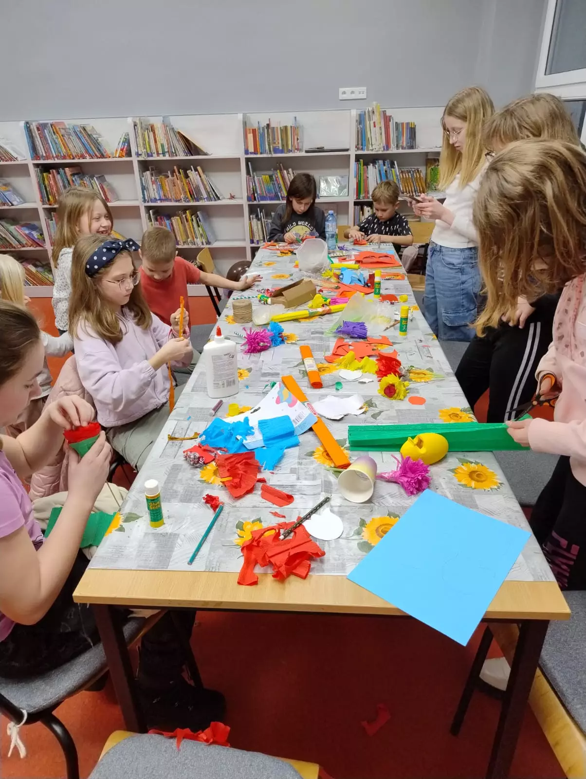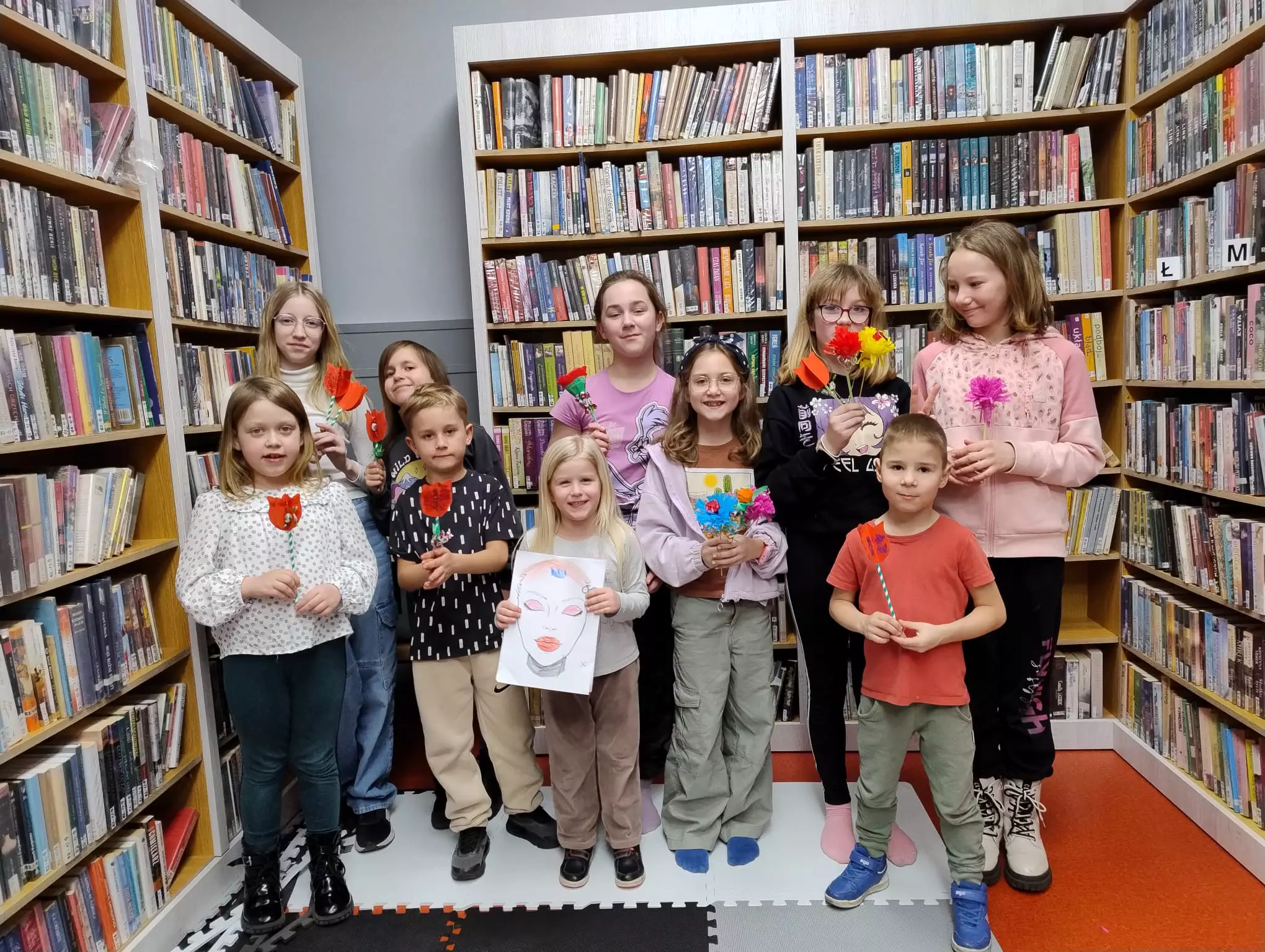 Na piątkowy zajęciach w bibliotece w Łagiewnikach Małych tematem zajęć był Międzynarodowy Dzień Kobiet. Rozmawialiśmy o genezie tego święta, o pisarkach, bohaterkach książek i o naszych polskich noblistkach. Nie zabrakło oczywiście zajęć plastycznych, na których dzieci wykazały się ogromną kreatywnością. Wykonywały przeróżne kwiaty z bibuły, niektóre nawet z niespodzianką w środku.