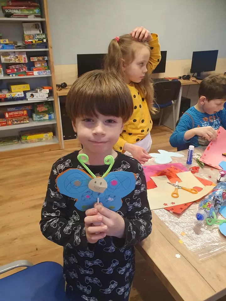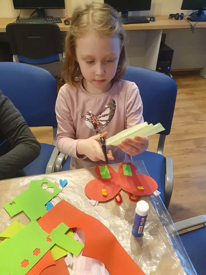 Z okazji Dnia Kobiet, w bibliotece zorganizowano zajęcia literacko-plastyczne. Podczas zajęć rozmawiano, dlaczego kobiety zasługują na swoje święto, wspólnie przeczytaliśmy też historie o niezwykłych kobietach, które dzięki swej pracy stały się sławne – były to Wisława Szymborska ( poetka, laureatka Nagrody Nobla w dziedzinie literatury ) oraz Astrid Lindgren ( twórczyni powieści dla dzieci i młodzieży, m.in. Fizia Pończoszanka, Dzieci z Bullerbyn ). Informacje o tych postaciach zaczerpnięto z książki pt. „Opowieści dla młodych buntowniczek. 100 historii niezwykłych kobiet”, znajdującej się w zbiorach dla dzieci. Następnie wykonaliśmy kolorowe motyle kryjące w sobie słodkiego lizaka.