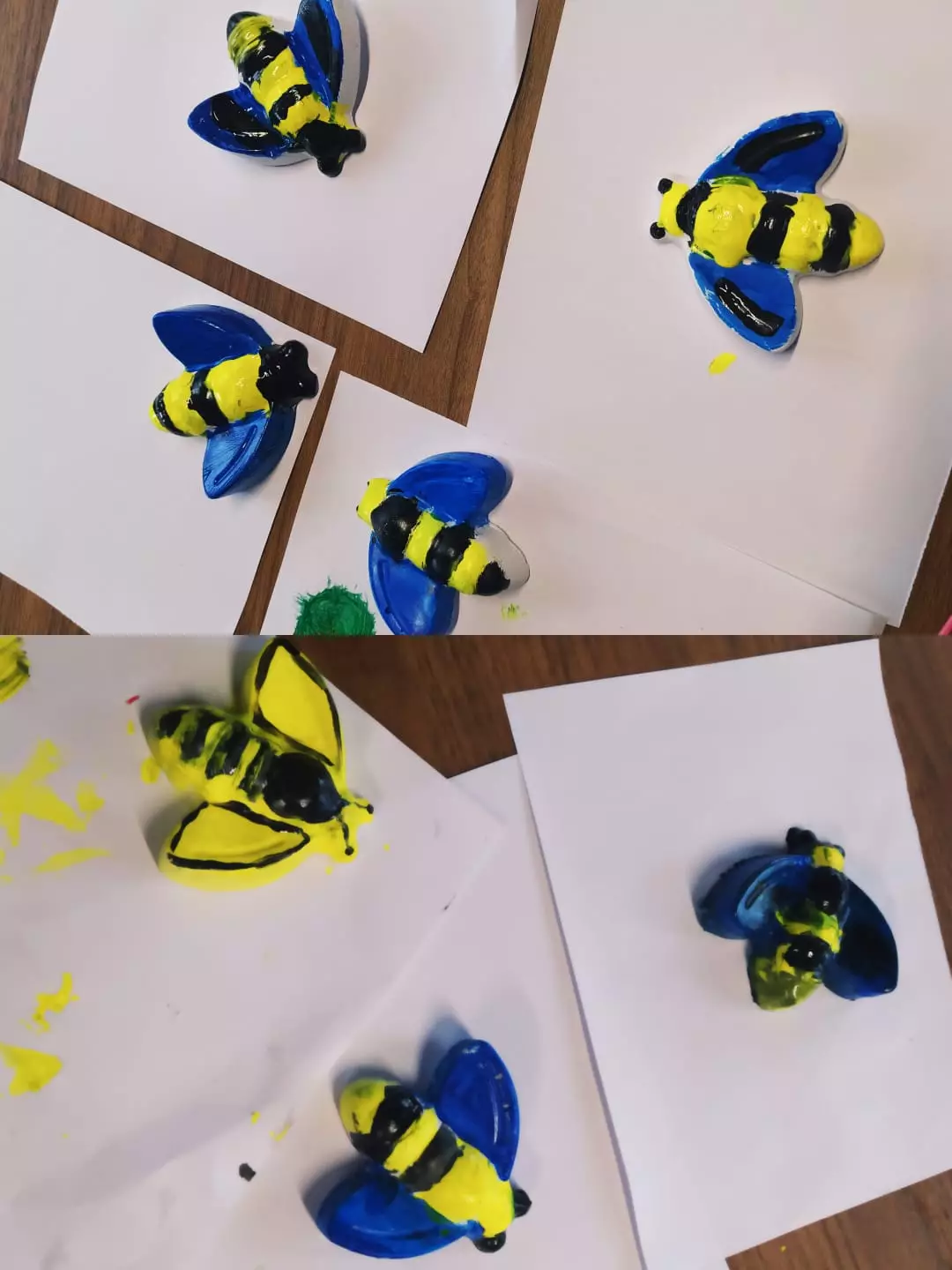 20 maj to " Dzień Pszczół ", z tej okazji z książki" Pszczoły i ich niezwykły świat" dzieci dowiedziały się wiele ciekawostek o tych pracowitych miododajnych owadach. Każde dziecko pomalowało według swego uznania gipsową pszczółkę.
