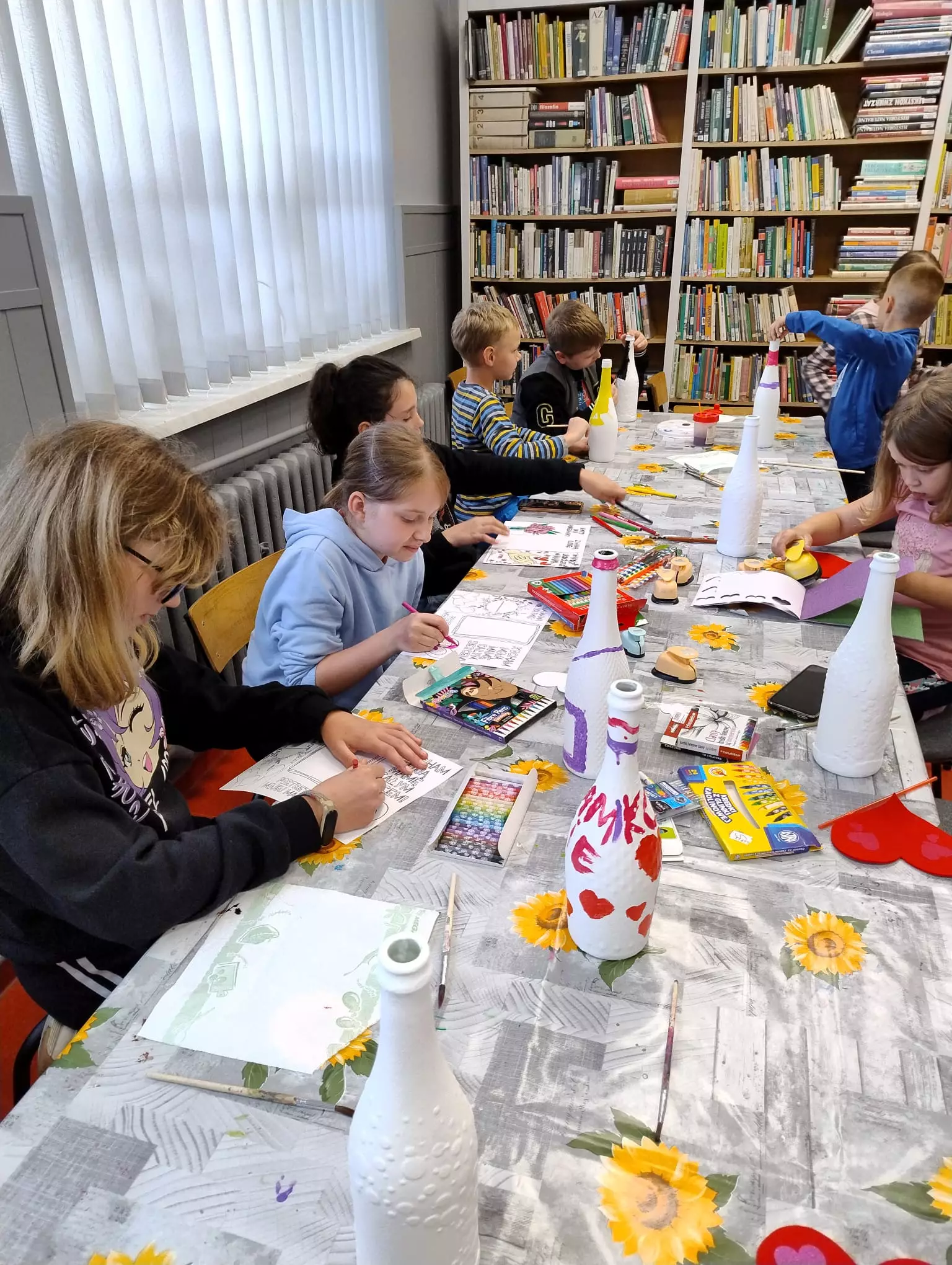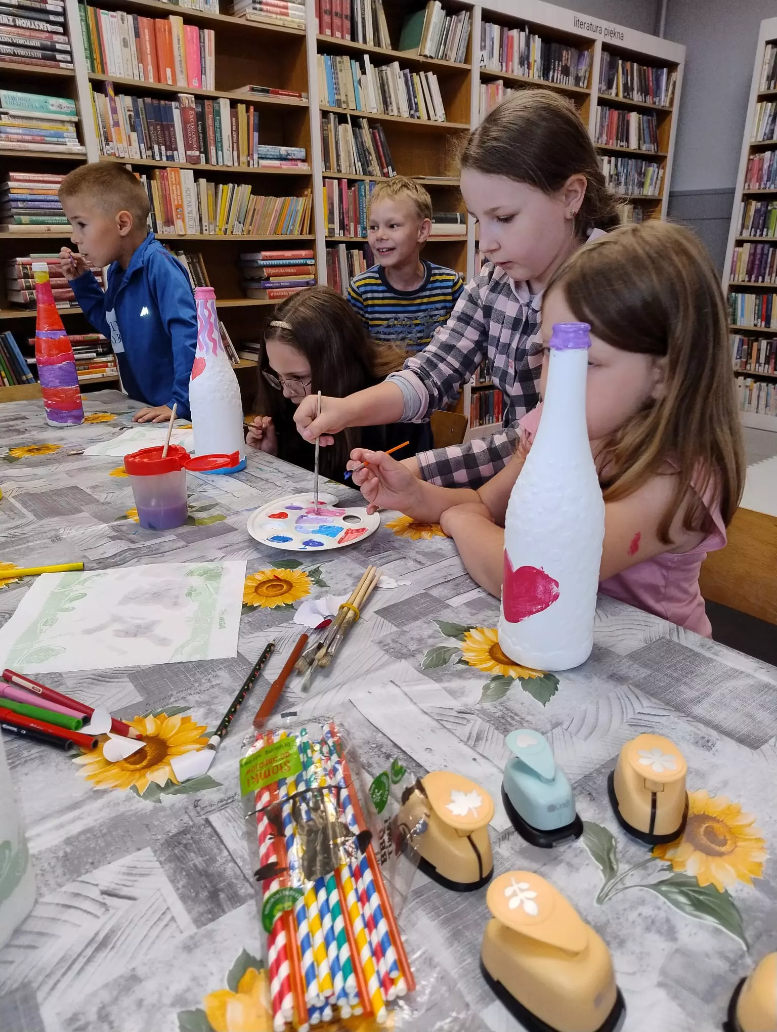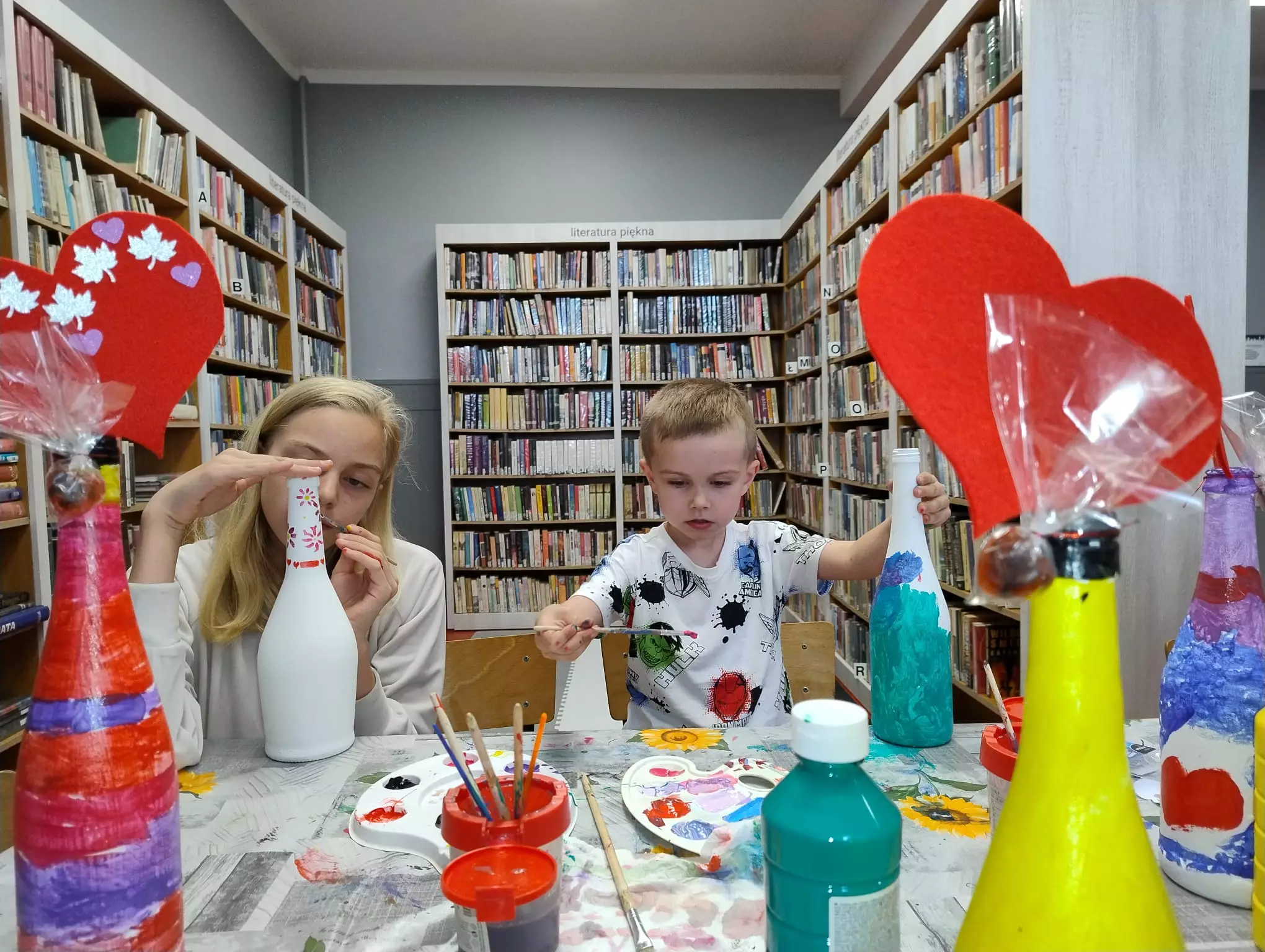 Tematem piątkowych zajęć w Filii Bibliotecznej w Łagiewnikach Małych było wyjątkowe święto jakim jest Dzień Mamy. To dzień wdzięczności i miłości, który ma bardzo długą historię i tradycję. Dzień, w którym w wyjątkowy sposób możemy podziękować im za ich trud i poświęcenie. Dzieci podczas zajęć wysłuchały opowiadania Joanny Papuzińskiej pt. "Jak nasza mama zreperowała księżyc". Opowiadały o tym, dlaczego mamy są tak wyjątkowe i za co je cenimy. Na koniec wykonywały prezenty dla swoich mam. Ze szklanych butelek wyczarowały piękne wazony oraz zrobiły laurki. Dzieci bardzo się starały, aby ich prezenty były oryginalne i niepowtarzalne.