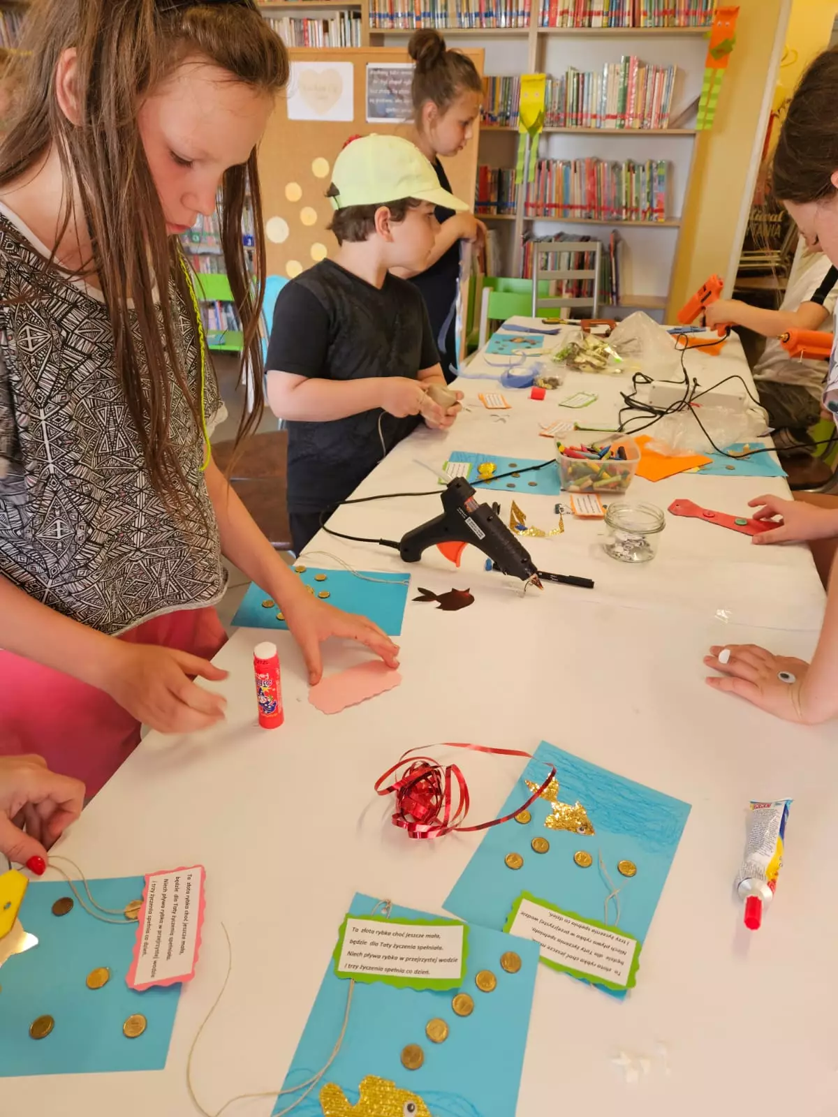 W przeddzień DNIA OJCA uczniowie szkoły podstawowej w Kośmidrach spotkali się na zajęciach literacko-plastycznych w bibliotece. Wspólnie wykonali oryginalne krawaty dla taty na specjalne okazje.