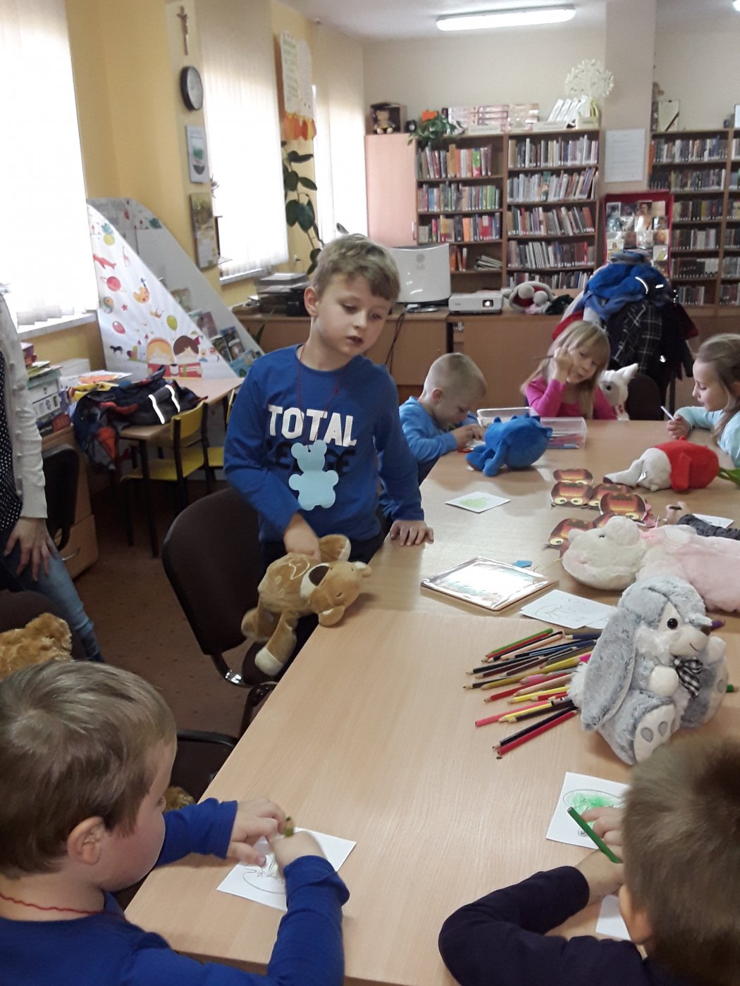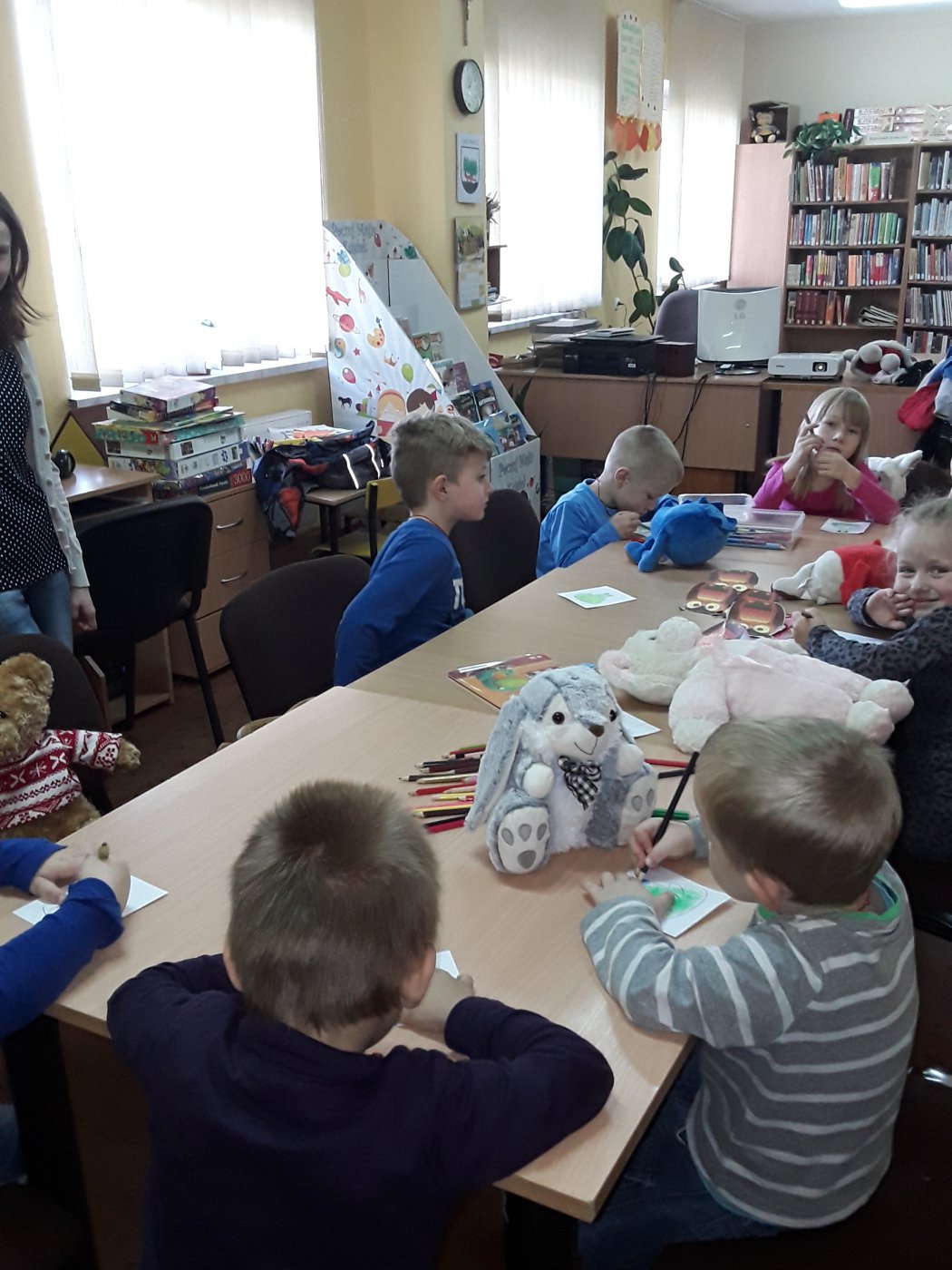 W Dzień Pluszowego Misia dzieci z przedszkola w Lisowicach zrobiły bardzo miłą niespodziankę . W tym dniu przybyły do biblioteki wraz ze swoimi misiami- przytulankami. Razem z nimi z uwagą wysłuchały czytanej im bajki. Zostawiły w bibliotece ilustrację do książki pt.” Żaba w Kapeluszu”, która została zawieszona na tablicy. Z okazji zbliżających się Andrzejek był czas też troszeczkę sobie powróżyć. Była to niesamowita zabawa, szczególnie odgadywanie przyszłości z lanego wosku, z którego wychodziły przeróżne stwory.