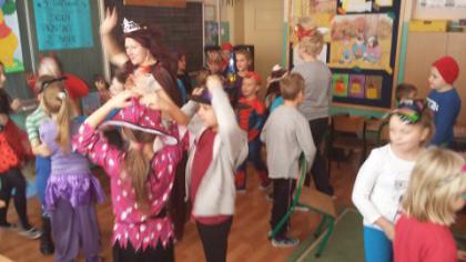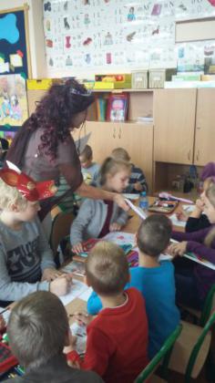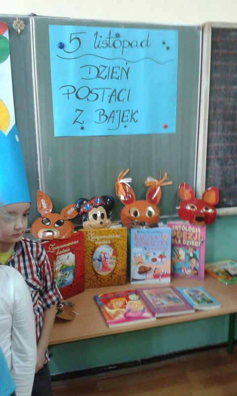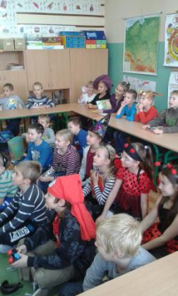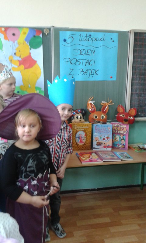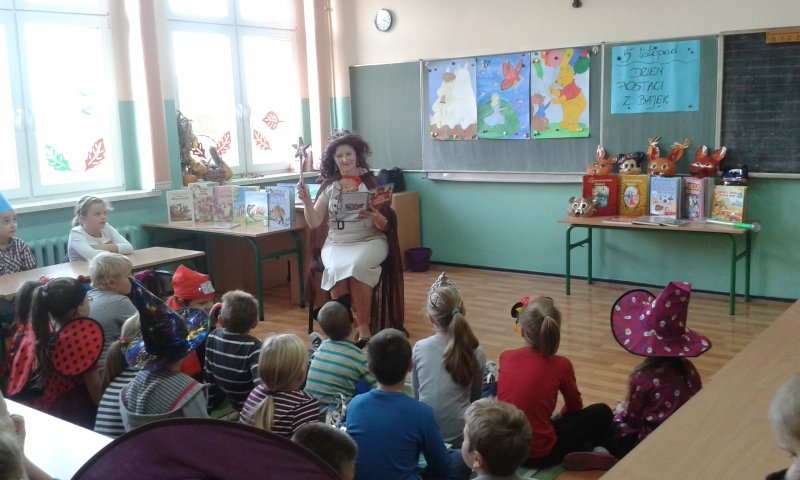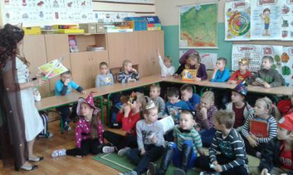 Dnia 5 listopada pani Jadwiga Kukowka przybyła do uczniów kl I-III Szkoły Podstawowej jako "Dobra Wróżka Biblioteczna". Czytając dzieciom fragmenty bajek bibliotekarka przeprowadziła je przez wspaniały bajkowy świat. Przebrane dzieci wcielały się w postacie bajkowe. Miło i szybko upłynął czas podczas wspólnej zabawy. Na zakończenie uczniowie wykonali kolorowanki postaci bajkowych, które wystawione są w bibliotece
