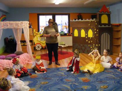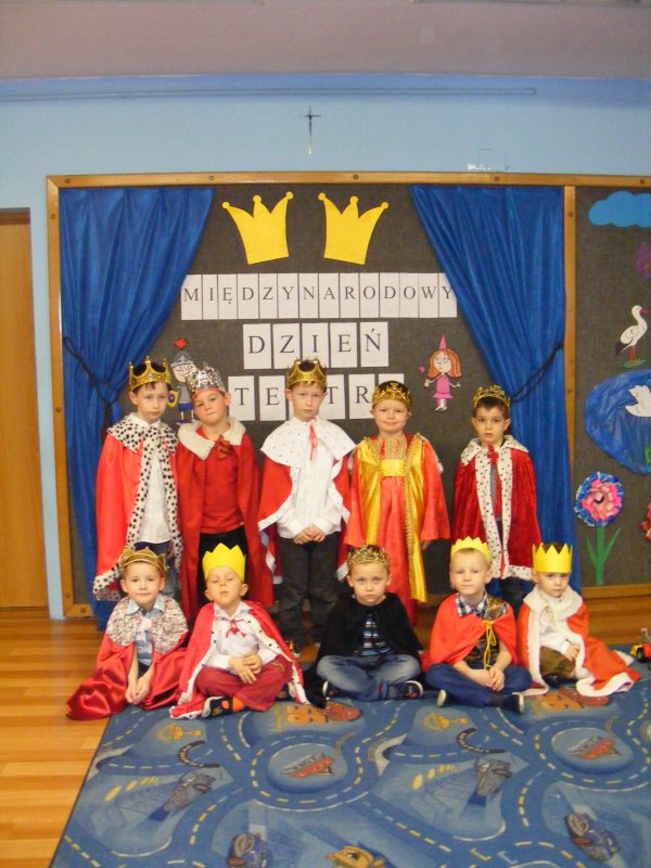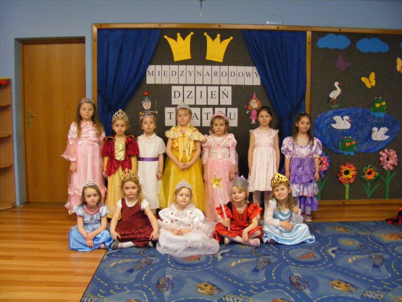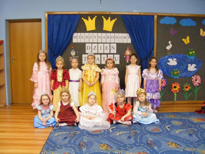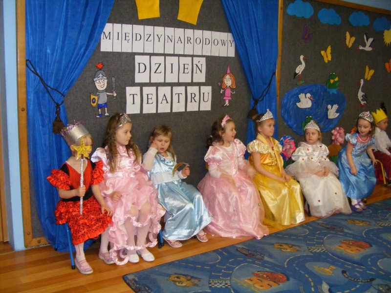 Dzieciom przybliżono podstawowe pojęcia związane z teatrem oraz zaprezentowała rożnego rodzaju kukiełki z papieru , z drewna a nawet ze siana. Następnie księżniczki i królewicze przeszły krótki test dworskich manier. Był też konkurs tańca podczas którego wybrano królewską parę. Na zakończenie uczestnicy pozowali do zdjęć z wybraną kukiełką. Obchody Dnia Teatru zorganizowane były przez nauczyciela Anetę Kandora.