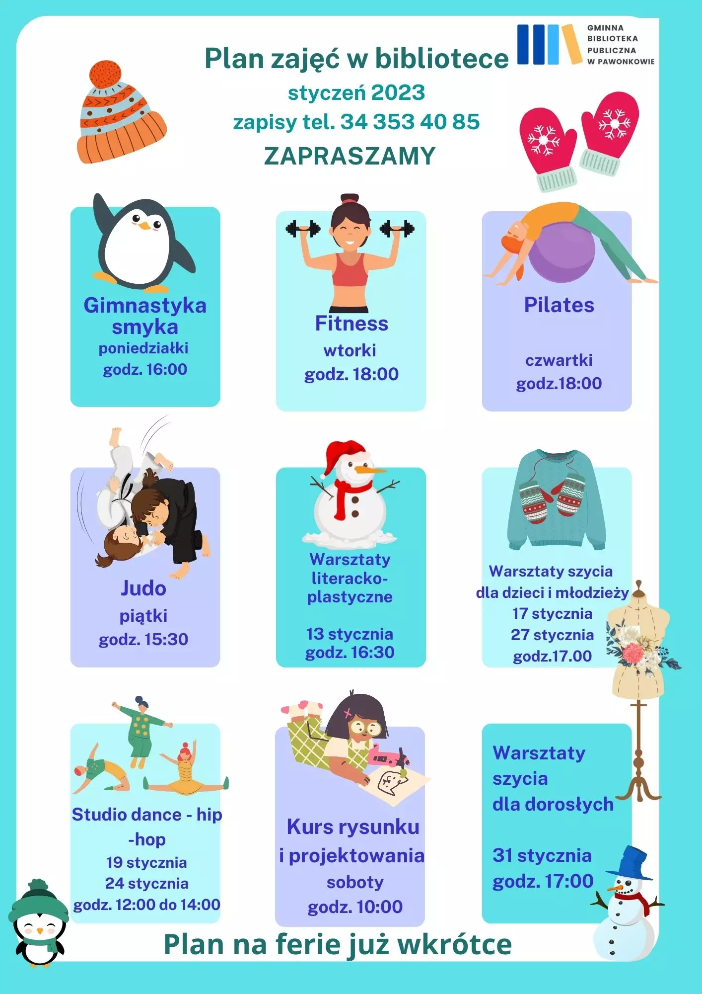 16, 18, 20 stycznia, godz. 11:00 biblioteka w Pawonkowie