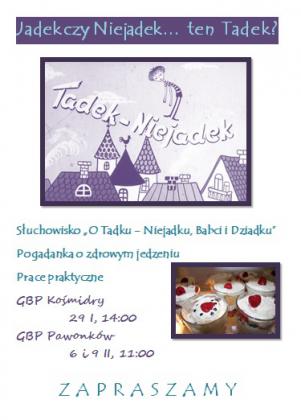 Zajęcia pt. "Tadek Niejadek" - 29 stycznia, o godz. 14.00 w bibliotece Kośmidrach