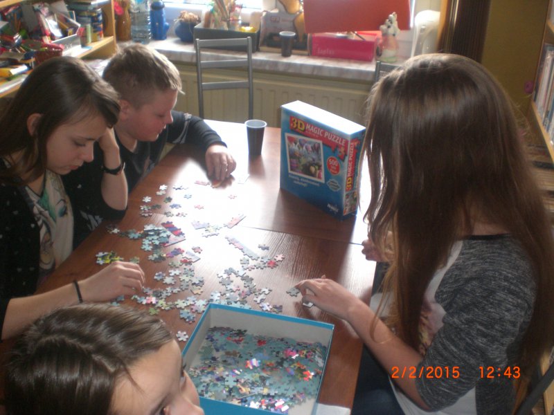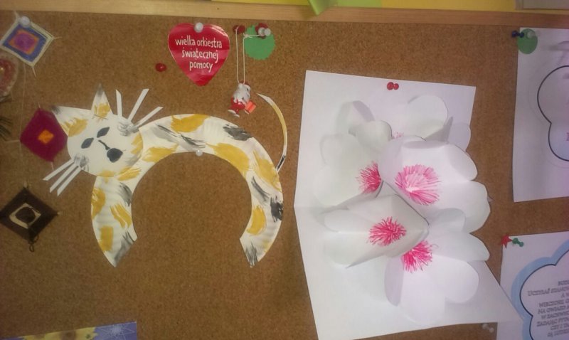 Powstały kotki z papierowych talerzy, podczas zajęć z recykligu -  myszki, serduszka przestrzenne z papierowej wikliny. Dzieci chętnie uczestniczyły w zabawach ruchowych w rytm muzyki, grach planszowych, układaniu puzli" 3D" i nie tylko.Z okazji Dnia Bezpiecznego Internetu odbyła się pogadanka na ten temat oraz wyświetlono film o bezpiecznym poruszaniu się w Internecie.