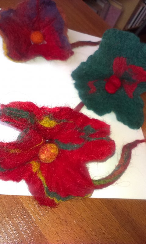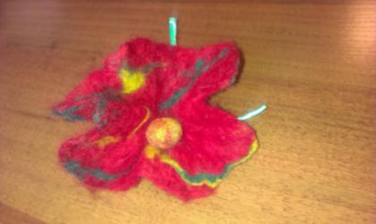 Podczas zajęć filcowania wełny na mokro-powstały piękne kwiaty,bransoletki.