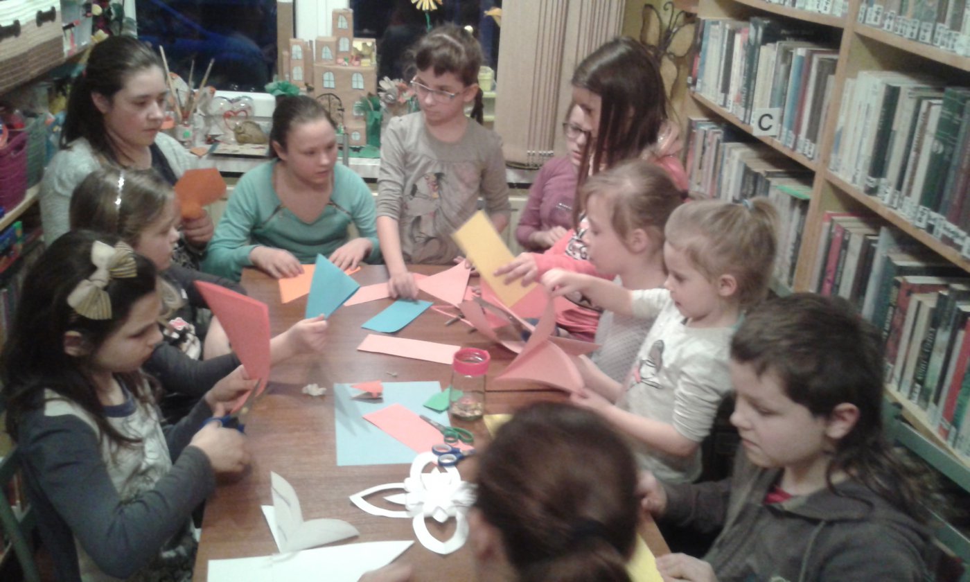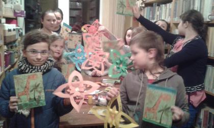 W czasie ferii młodzi czytelnicy uczestniczyli w zajęciach w bibliotece. Podczas warsztatów dzieci chętnie korzystały z książek : "Zabawy plastyczne"- Dariusza Żejmo oraz "Pomysły na własnoręczne prezenty".