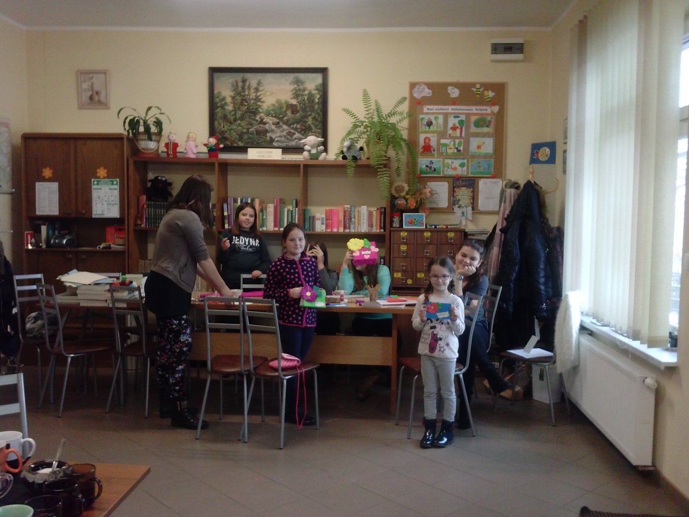 W pierwszym tygodniu uczestnicy mieli okazję zrobić własnoręcznie kwiatki i kartki na Dzień Babci i Dziadka. W drugim natomiast serduszka i kartki na Walentynki. W pracach wykorzystano technikę płaskiego origami. Użyto kolorowego papieru, plastelinę, klej, koraliki. Podczas zajęć młodszym koleżankom pomocą służyły dwie licealistki, Paulina i Kinga.