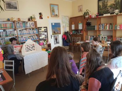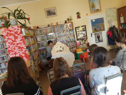 Ostatniego dnia ferii zrobiliśmy w bibliotece przedstawienie kamishibai. Czytaliśmy opowiadania: Szukając Marudka oraz Legenda o Skarbniku.