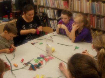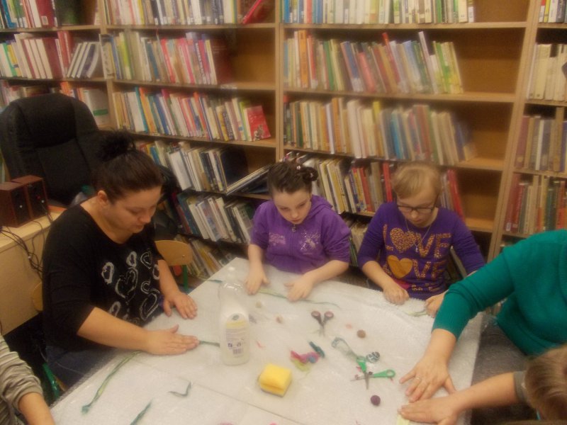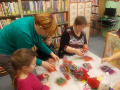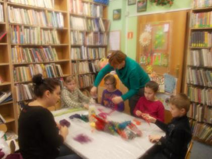 Podczas ferii odbyły się warsztaty wykonawania ozdób z filcu, dzieci wykonały piękne kwiatki- broszki, bransoletki. Korzystano również z komputerów i Internetu. 11 lutego bibliotekę odwiedziły czytelniczki z Lisowic pod opieką bibliotekarki Jolanty Piosek. Dla gości przygotowano zgaduj-zgadulę oraz zaproszono ich do przedszkola gdzie Justyna Pyka w przebraniu Baby Jagi przeczytała im bajkę "Jaś i Małgosia". Następnie po słodkim poczęstunku i po wymianie małych upominków młodzież grała w "Małpki" oraz w super pamięć. Po mile spędzonym czasie goście powrócili do Lisowic, dla niektórych była to pierwsza podróż autobusem PKS.