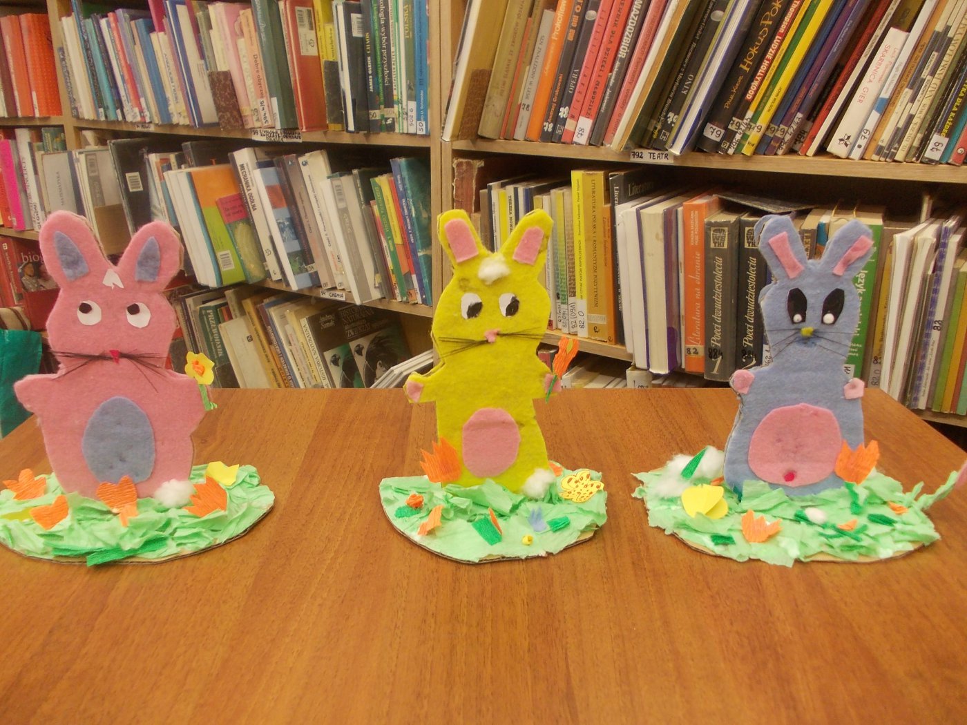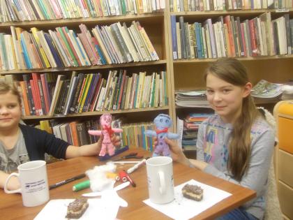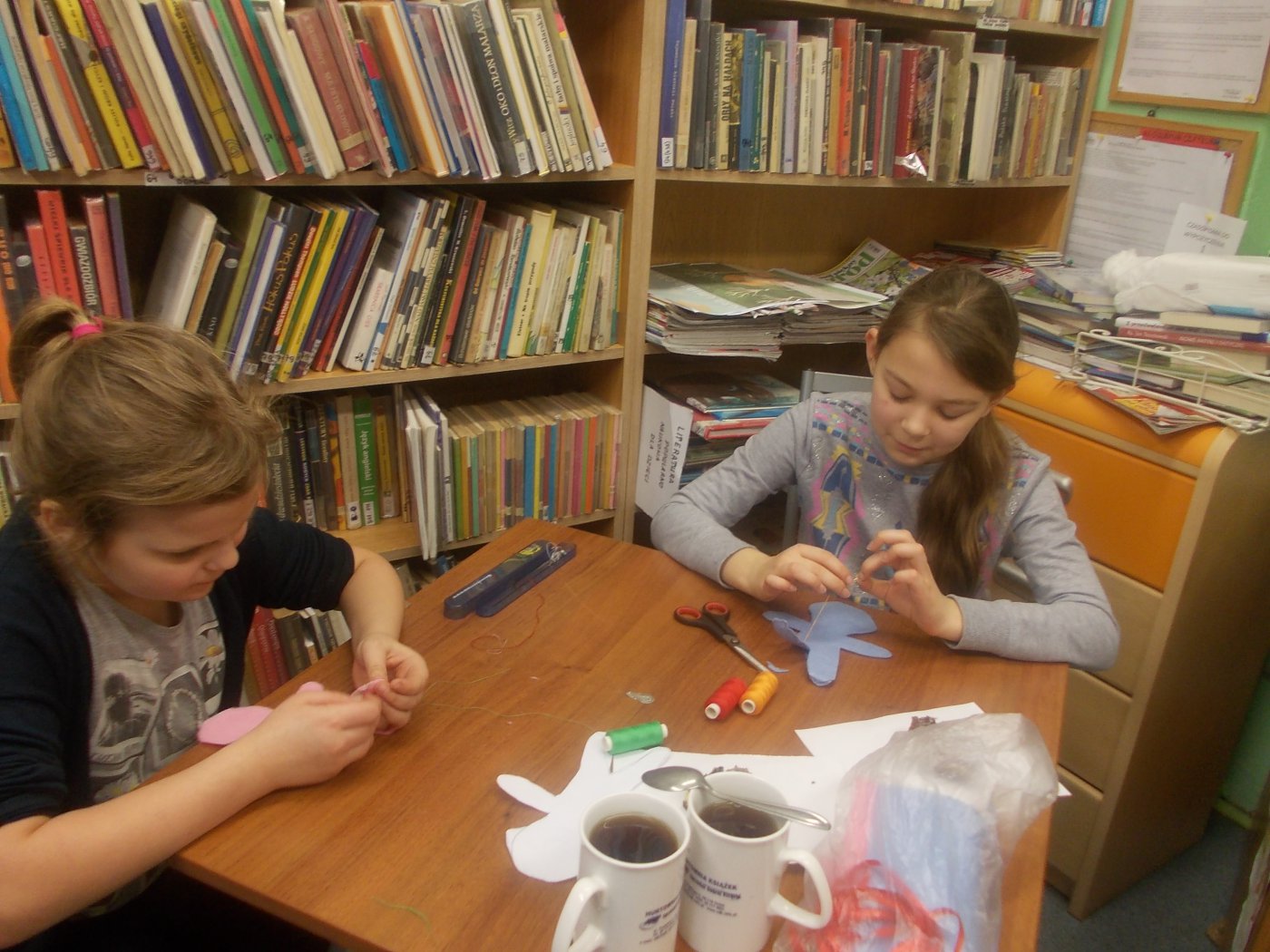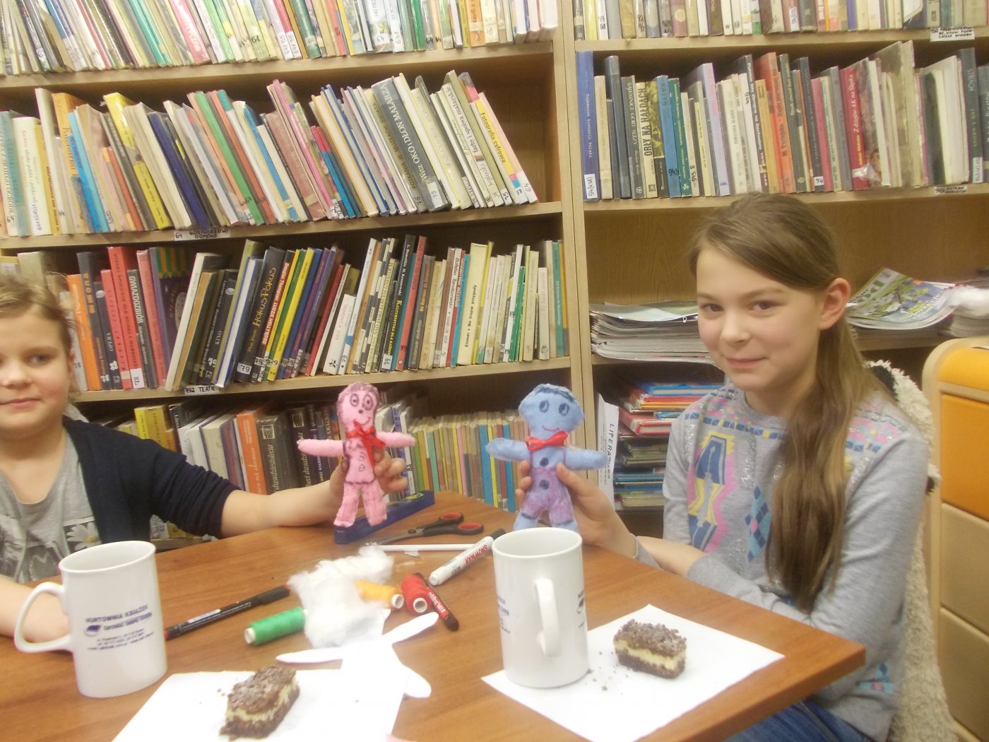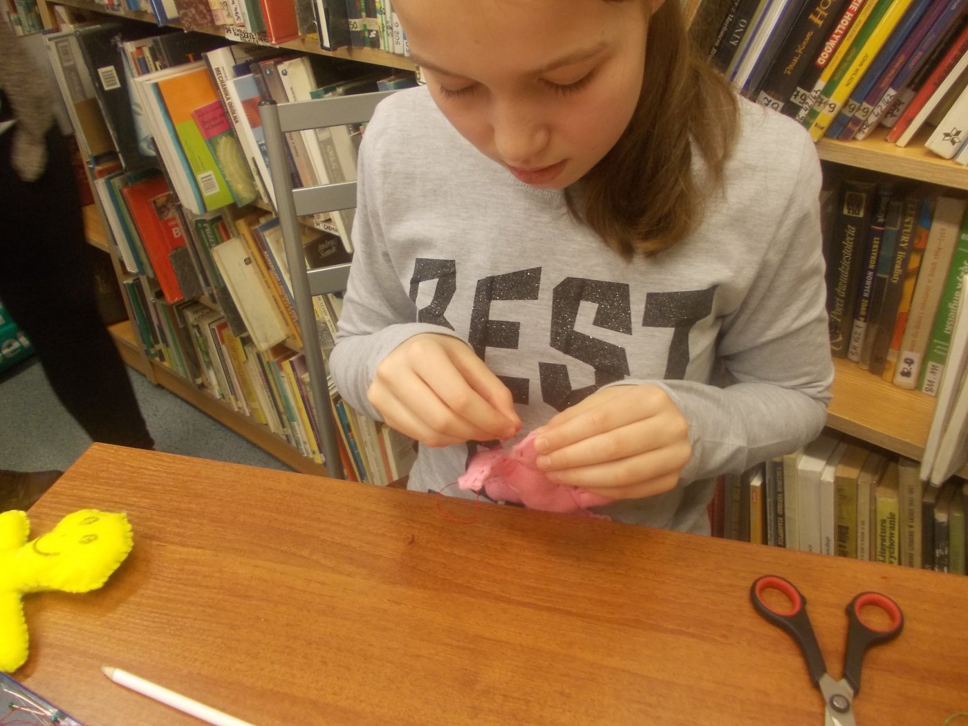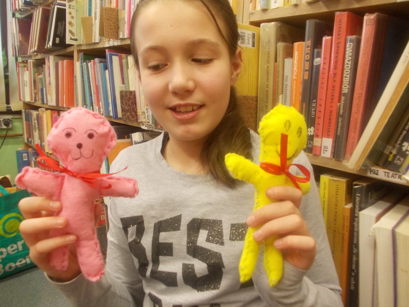 Podczas ferii zimowych 2016 w bibliotece odbywały się zajęcia i warsztaty dla dzieci. Dziewczyny samodzielnie szyły misie, oraz kleiły zajączki wielkanocne.Kinga, Dominika i Natalka swoje prace w nagrodę zabrały do domu.