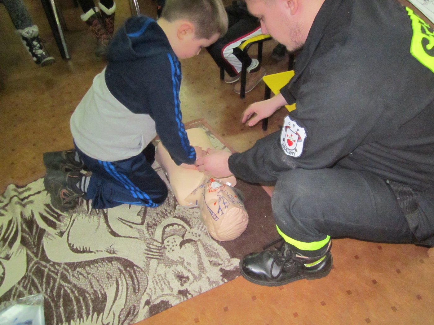Dużą atrakcją było spotkanie ze strażakami OSP w Dralinach. Panowie strażacy przeprowadzili szkolenie w zakresie PIERWSZEJ POMOCY. Wszyscy czynnie w tych zajęciach uczestniczyli..