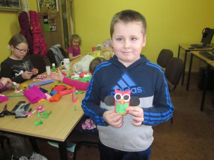 Ferie zimowe szybko się skończyły, był to radosny czas, a niektóre prace wykonane w czasie ich trwania można zobaczyć na wystawie w bibliotece.