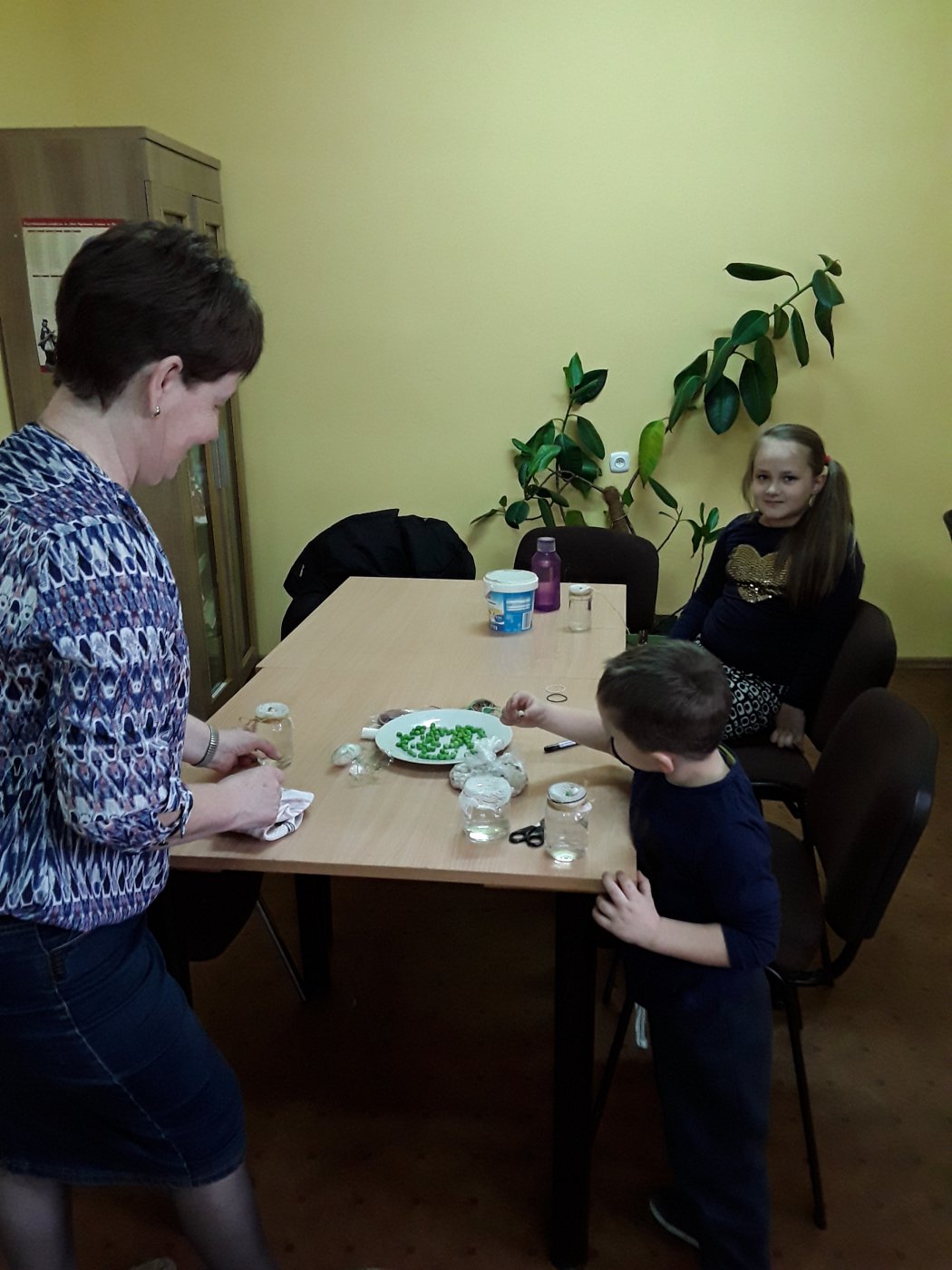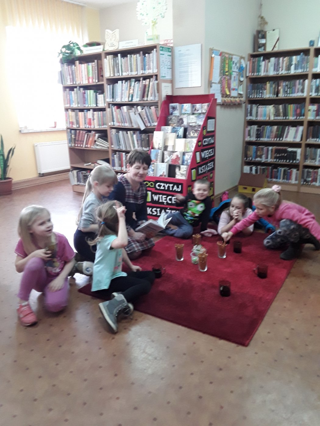 W pierwszym dniu ferii w bibliotece w Lisowicach najmłodsi czytelnicy milo spędzili czas słuchając opowiadań przedstawionych za pomocą teatrzyku Kamisibai. W roli czytających wystąpili chętni uczestnicy zajęć, którzy zaprezentowali "Legendę o Skarbniku"Juliana Brudzinskiego, opowiadanie pt.: "Groszek" oraz baśń pt.: "Czerwony Kapturek". Dzieci zainspirowane historyjką o Groszku postanowiły wyhodować w bibliotece sadzonki groszku i fasoli w słoiczkach. Obserwacje wzrostu roślinek prowadzone były podczas ferii oraz po ich zakończeniu.