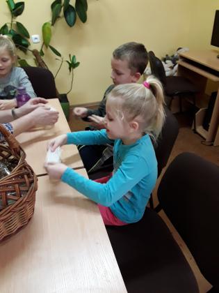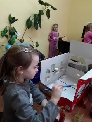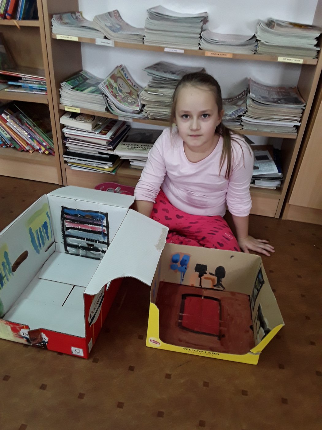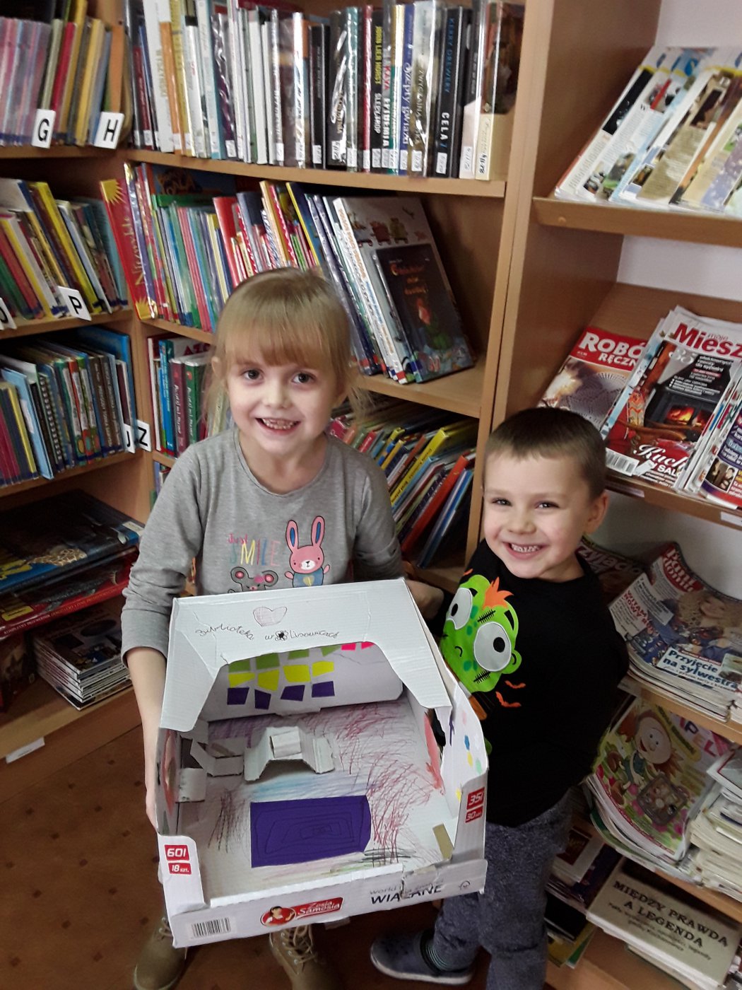 W kolejnym dniu czytano książkę pt.:"Michałek i pudełko niespodzianek". Wykonano makietę biblioteki w pudełku, wzorując się na aktualnym wyposażeniu i umeblowaniu. Pojawiły się także nowe pomysły na aranżację wnętrza placówki. W ostatnim dniu ferii z okazji zbliżającego się Dnia Zakochanych uczestnicy zajęć zrobili ozdobne pudełka z niespodzianką dla swojego najlepszego przyjaciela. Podczas wszystkich spotkań był również czas na zabawy ruchowe i słodkie poczęstunki. Młodzi czytelnicy zapoznali się z przygotowaną dla nich wystawą nowości wydawniczych zakupionych ze środków MKiDN w ramach Narodowego Programu Rozwoju Czytelnictwa. Zgodnie z hasłem "Bawię się i czytam" wiele osób wypożyczyło książki i zabrało je do domu. Prace wykonane przez dzieci zostały wystawione w bibliotece.