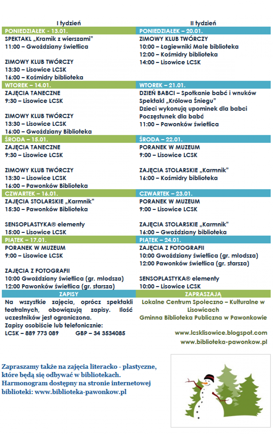 środa - 15 stycznia, godz. 16.00 - Zimowy Klub Twórczy (w bibliotece) -