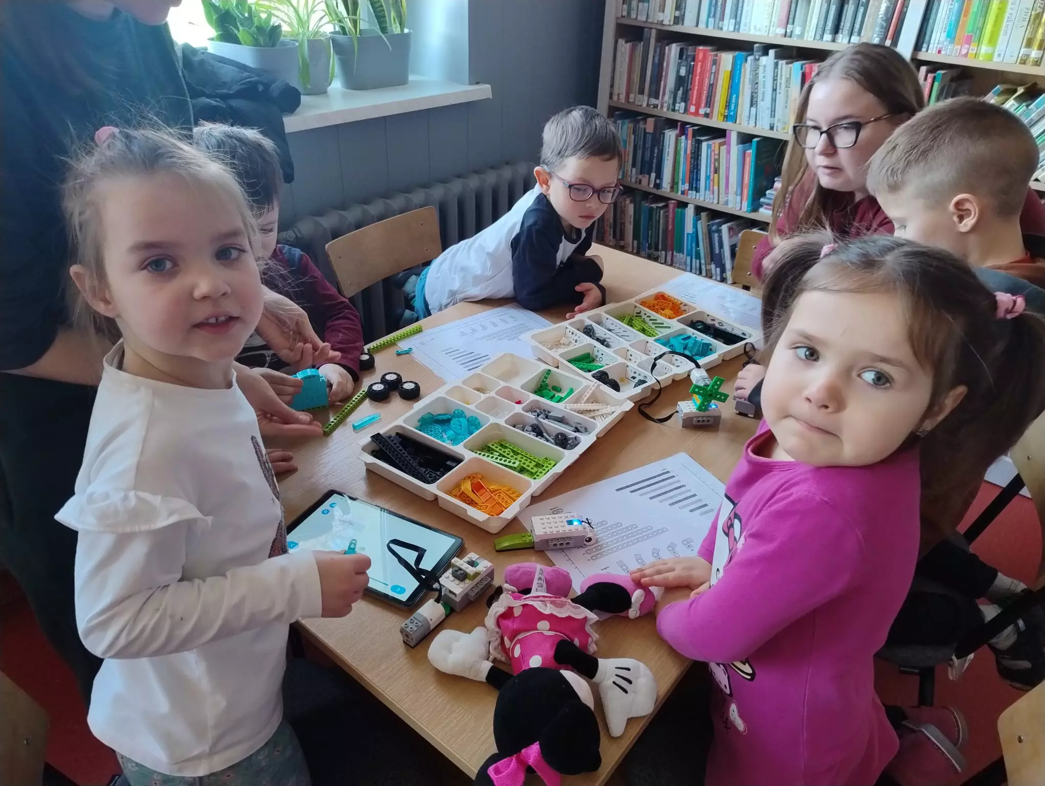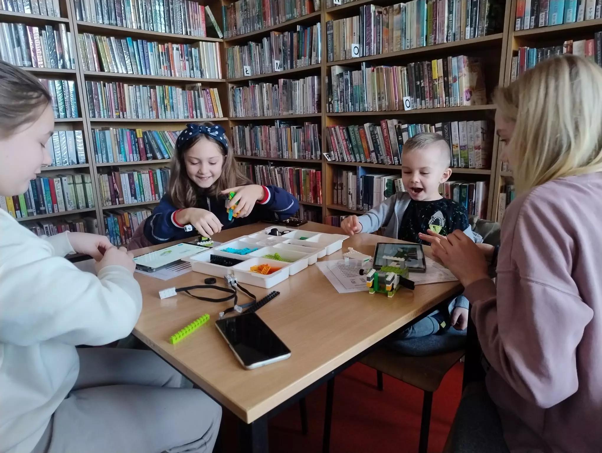 Podczas ferii w bibliotece w Łagiewnikach Małych dzieci miały okazję uczestniczyć w zajęciach z robotyki LEGO. Budowały i programowały własne maszyny. Najwięcej radości sprawił im etap testowania robotów.