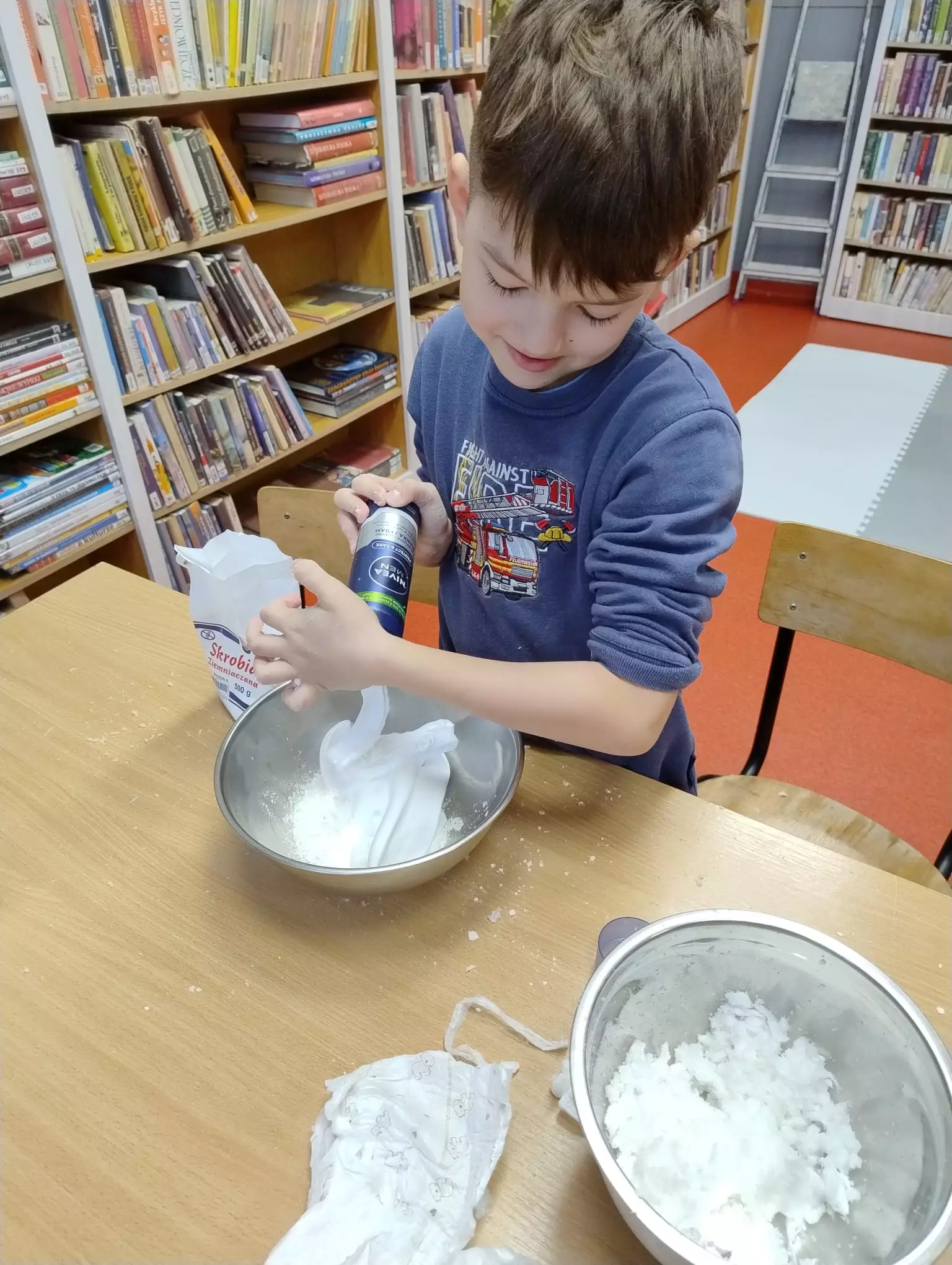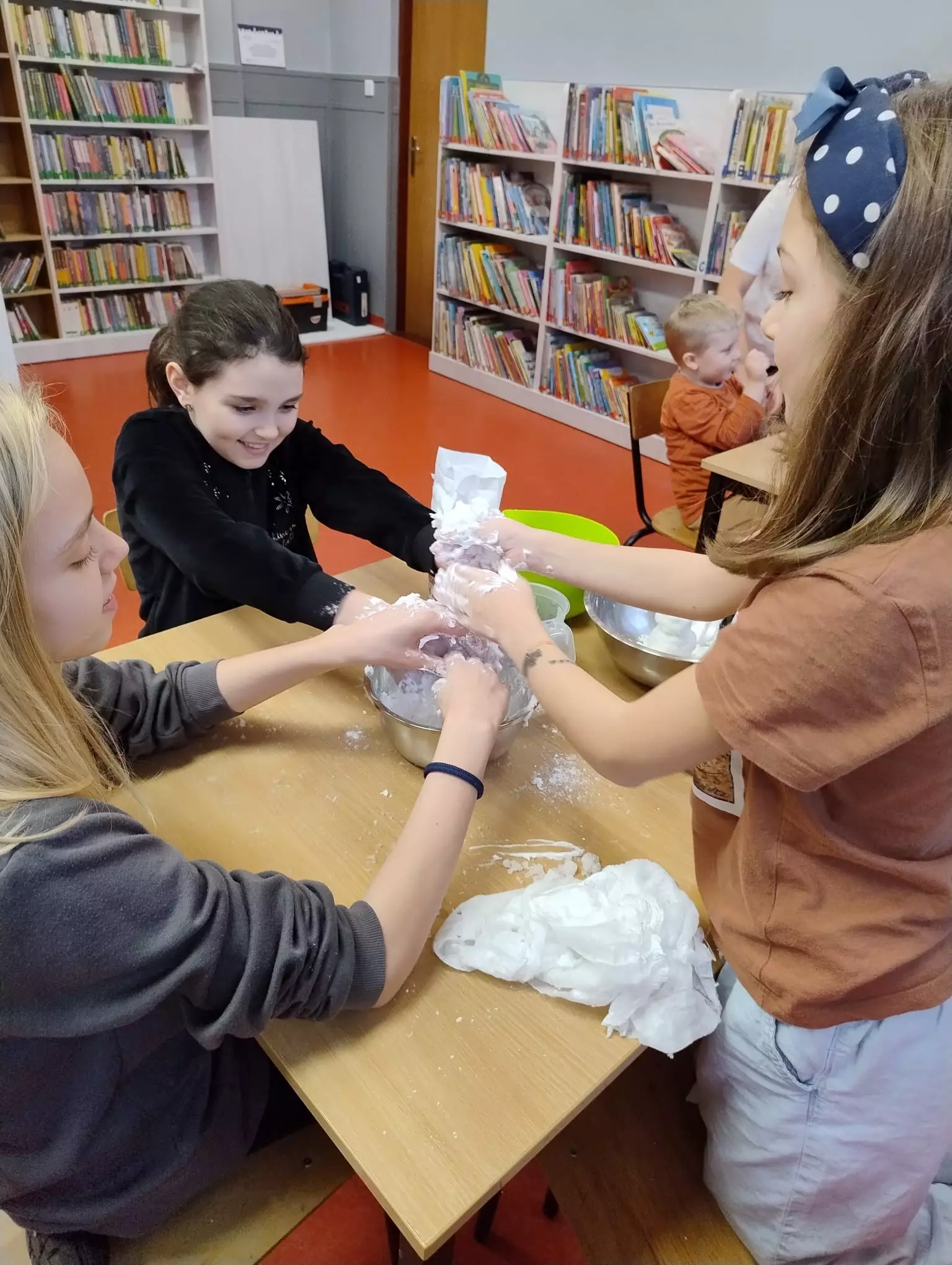Uczestniczki warsztatów szydełkowania siedzą przy stole i wykonują pierwsze kroki.Dzieci rozpoczynają kurs szydełkowania.Uczestniczki zajęć szydełkują kolorową włóczką.Dziewczyny siedzą przy stole i szydełkują.Dzieci na zajęciach z robotyki składają klocki Lego.Dzieci próbują jazdę złożonymi samochodzikami z Lego.Dzieci siedzą przy stoliku i składają klocki Lego.Dziewczyny składają autko z klocków Lego.Gazetka biblioteczna.Dzieci siedzą przy stoliku i wykonują sztuczny śnieg.Książka, ciasto i serce z papieru.Wspólne zdjęcie po zajęciach bibliotecznych.Chłopczyk prezentuje swoje serduszko walentynkowe z papieru.Dzieci siedzą przy stole i wyklejają serca z papieru.Dziewczynka klei walentynkowe serduszko.Uczestnicy warsztatów kleją papierowe serduszka.Dzieci wytwarzają sztuczny śnieg.Dziewczynka i chłopak z mąki i pianki do golenia robią sztuczny śnieg.Chłopczyk wyciska piankę do golenia do miski.