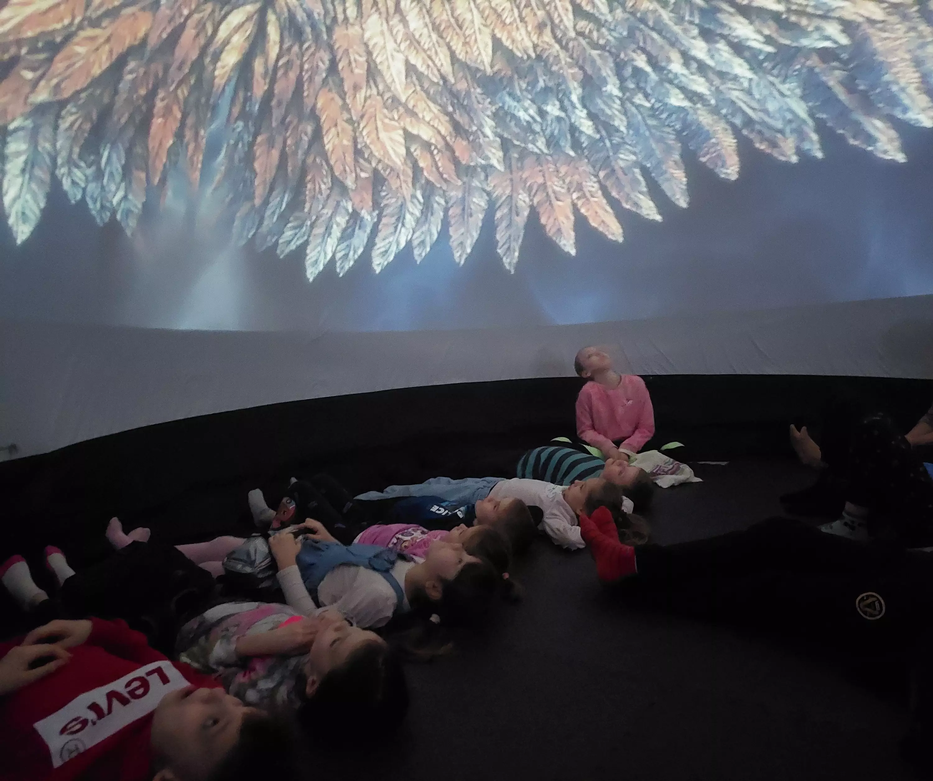 W piątek odbyliśmy fascynującą podróż w kinie sferycznym. Leżąc na plecach przeżyliśmy niezapomniane chwile podczas seansów filmowych.