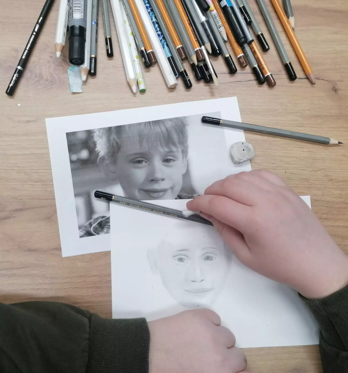 Na kursie rysunku poczuliśmy się jak prawdziwi artyści i rozwinęliśmy swoje umiejętności plastyczne.