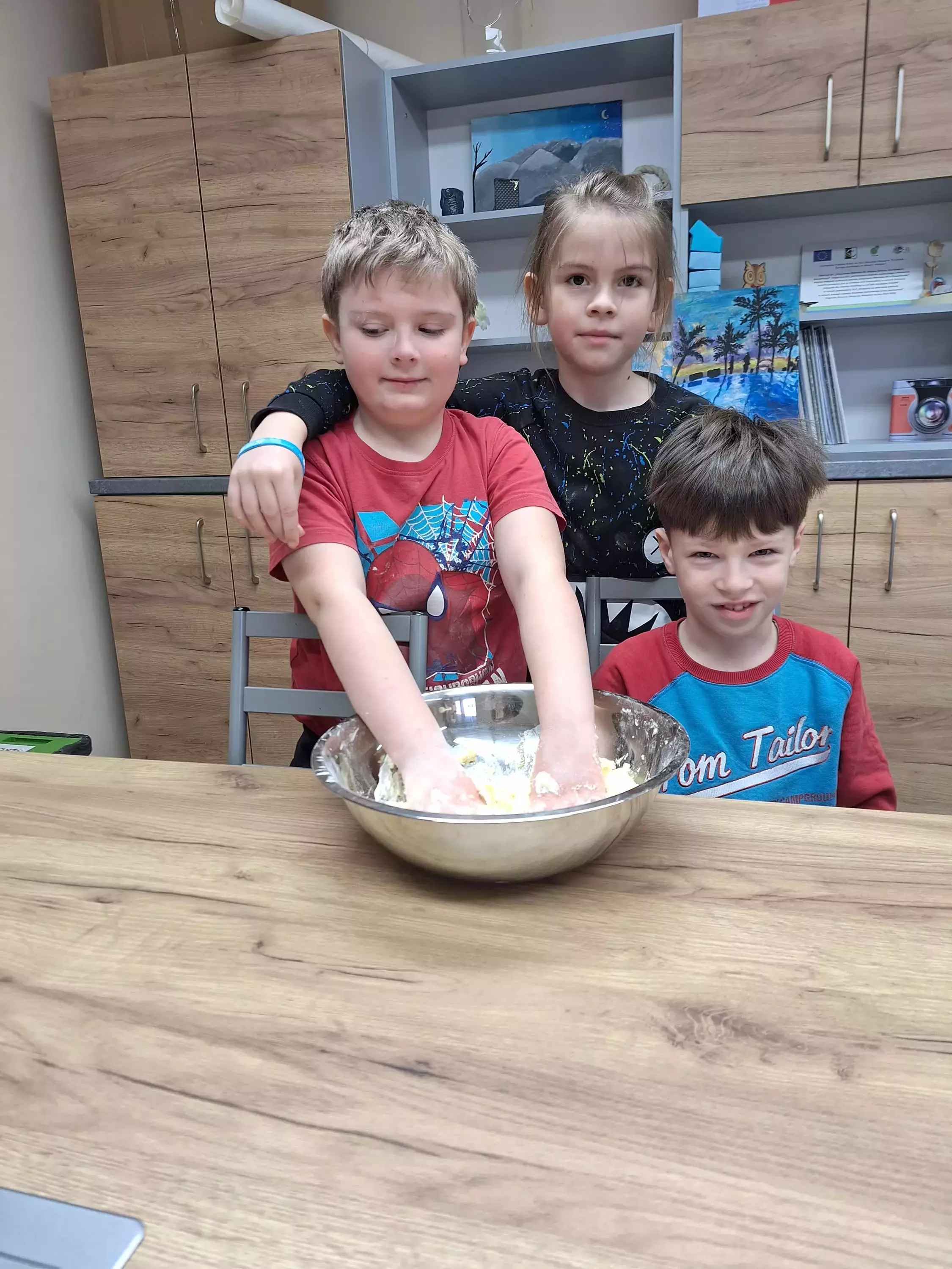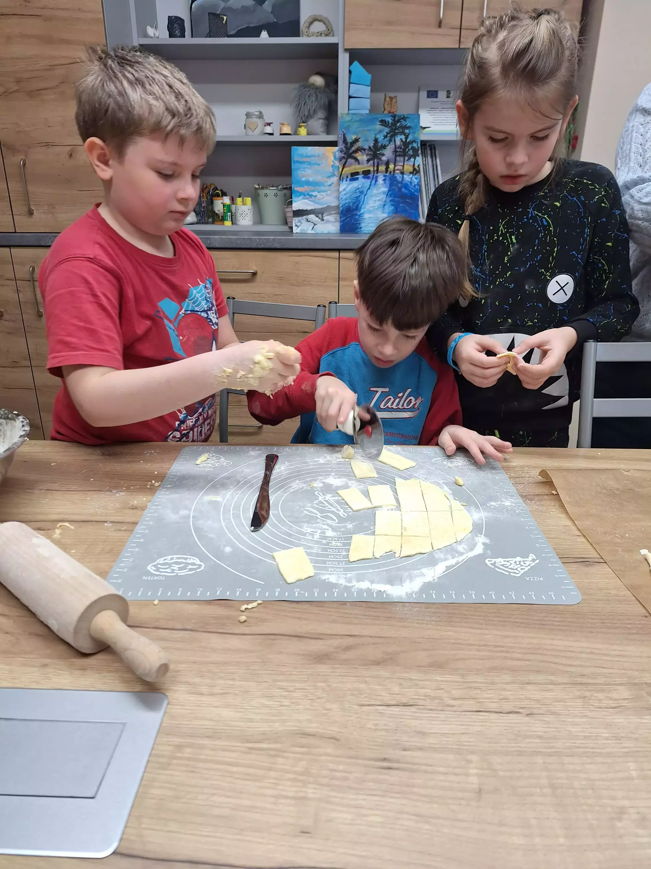Trener z psem.Trener z psem.Trener wraz z psem pokazują dzieciom pozycję bezpieczną.Zdjęcie szkicowane ołówkiem.Zdjęcia prac szkicowanych ołówkiem z kursu rysunku.Dziewczyny szkicują ołówkiem.Uczestnicy na kursie rysunku rysyją ołówkiem postać z filmu.Wspólne zdjęcie z warsztatów szycia na maszynie dla młodzieży.Uczestnicy zajęć siedzą przy maszynach na zajęciach krawieckich i szyją poduszki.Uczestniczki zajęć szyją na maszynach poduszki.Warsztaty szycia poduszek dla młodzieży.Na warsztatach kulinarnych uczestniczki miksują ciasto na oponki.Chłopcy na warsztatach kulinarnych wyrabiają ciasto na faworki.Chłopcy wycinają i składają z ciasta faworki.Dziewczyny formują z ciasta oponki.Wspólne zdjęcie po warsztatach kulinarnych i degustacja oponek i faworków.