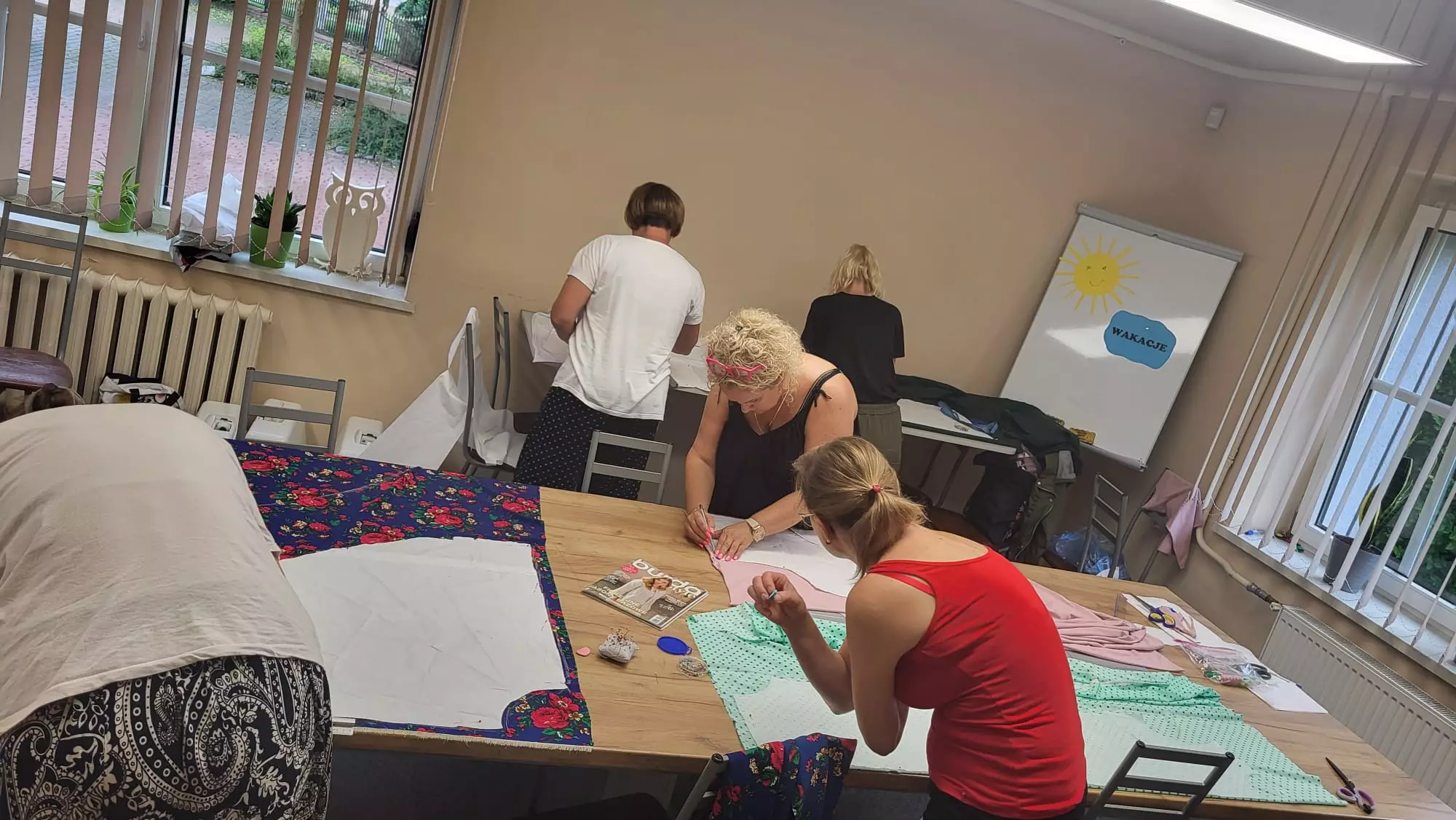 Uczestniczki warsztatów wycinają nożyczkami ubranie z materiału.Uczestniczki warsztatów wycinają nożyczkami ubranie z materiału.Uczestniczka warsztatów wycina nożyczkami ubranie z materiału.Uczestniczka warsztatów wycina nożyczkami ubranie z materiału.Uczestniczki warsztatów wycinają nożyczkami ubranie z materiału.Uczestniczka warsztatów wycina nożyczkami ubranie z materiału.
