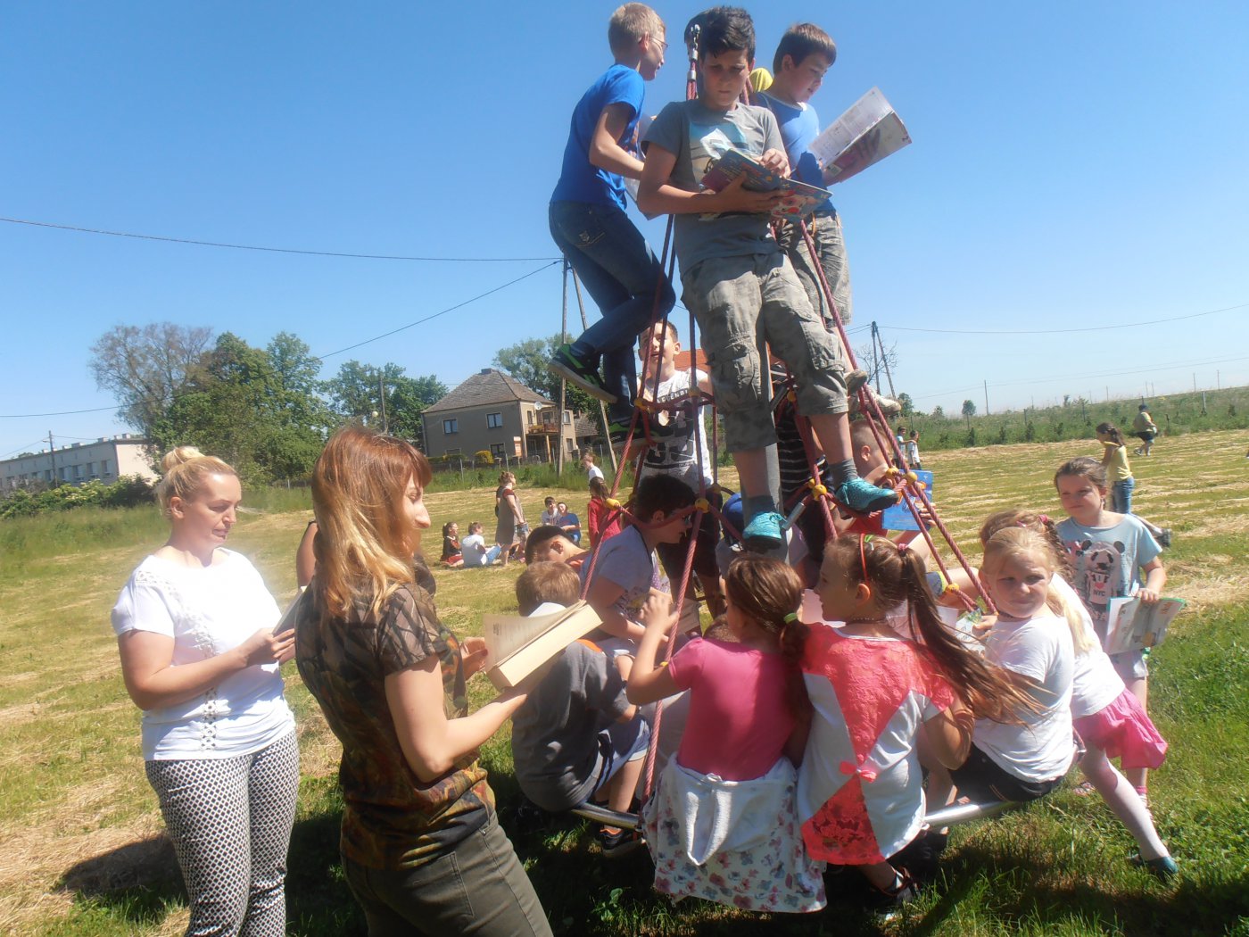 1 czerwca uczniowie Szkoły Podstawowej przybyli ma plac przed budynkiem, w którym mieści się GBP w Pawonkowie. Wszyscy jednocześnie czytając, każdy swoją książkę, o godz. 10.00 włączyli się w ogólnopolską akcję masowego czytania „Jak nie czytam jak czytam". Akcja ma na celu promowanie czytania i książek wśród dzieci i młodzieży oraz inicjowanie mody na czytanie.