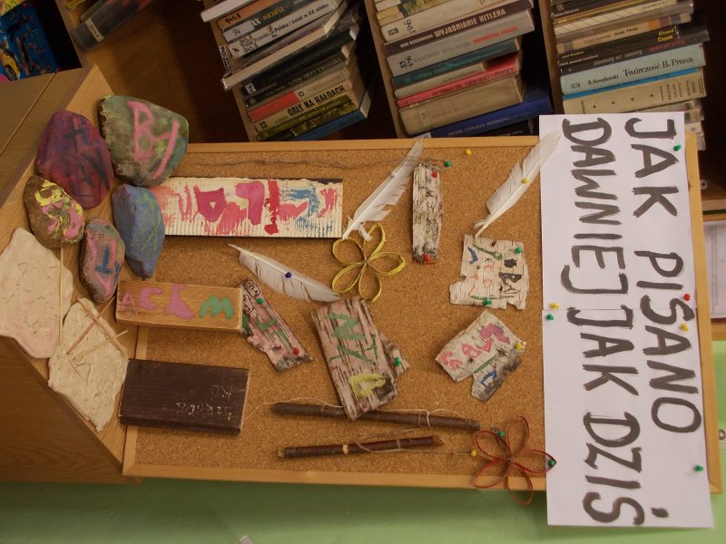 W dniu 23.09.2014 r. klasa I Szkoły Podstawowej w Łagiewnikach Małych wzięła udział w lekcji na temat dawnych materiałów pisarskich przeprowadzonej w Bibliotece. Uczniowie poznali historię i rodzaje pisma. Mieli okazję spróbować pisania różnymi narzędziami na kamieniu, korze drzew, drewnie, tabliczce glinianej, stawiali znaki na patykach, poznali też pismo węzełkowe.