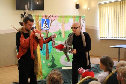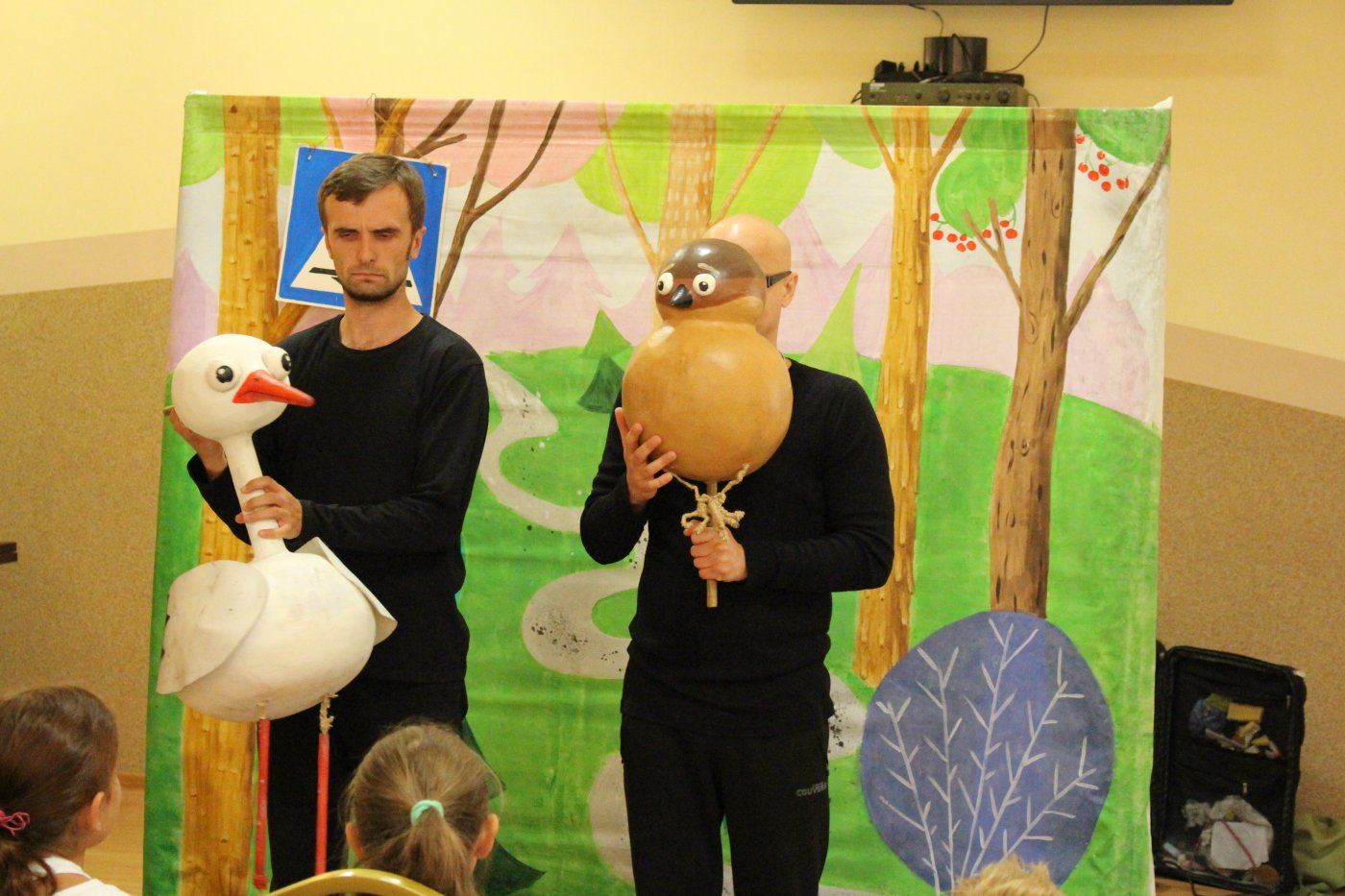 Dzieci, przybyłe na spektakl, poznały historię wróbelka, który dostał zaproszenie na wesele sowy. W drodze jednak miały miejsce różne zdarzenia. Odciągały one uwagę ptaszka od celu podróży, ale przy okazji również nauczył się wielu rzeczy, np. zasad poruszania się na drodze czy odpowiedniego zachowania się w szkole. Wraz z wróbelkiem i dzieci mogły odświeżyć sobie te wiadomości. W przedstawieniu wykorzystane zostały duże lalki w typie kukiełek i pacynki. Po ciekawym i zabawnym widowisku, dzieci wzięły udział w warsztatach lalkowych, przeprowadzonych w bardzo interesujący sposób. Poznały różne lalki teatralne (pacynka, pacynka muppet, kukiełka, jawajka) ich zastosowanie i sposób używania. Dowiedziały się również jak w prosty sposób można niektóre z nich wykonać. Dzieci miały także okazję wystąpić na scenie w krótkich scenkach z lalkami.