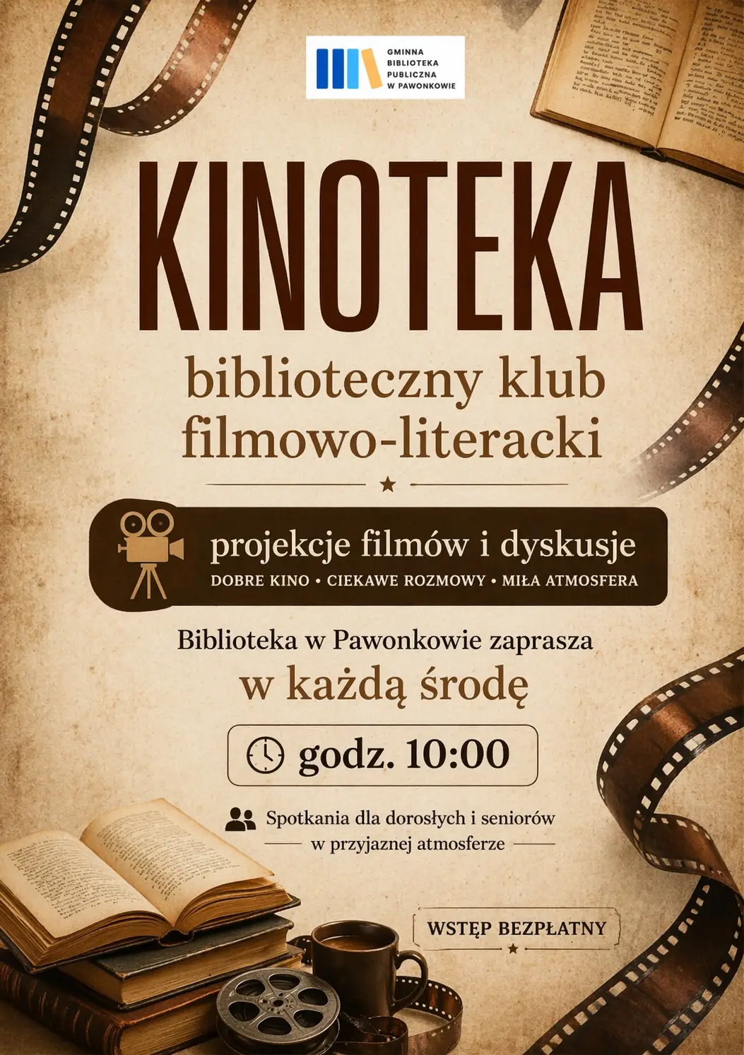Biblioteka w Pawonkowie zaprasza na cykliczne spotkania w ramach klubu filmowo-literackiego „Kinoteka".