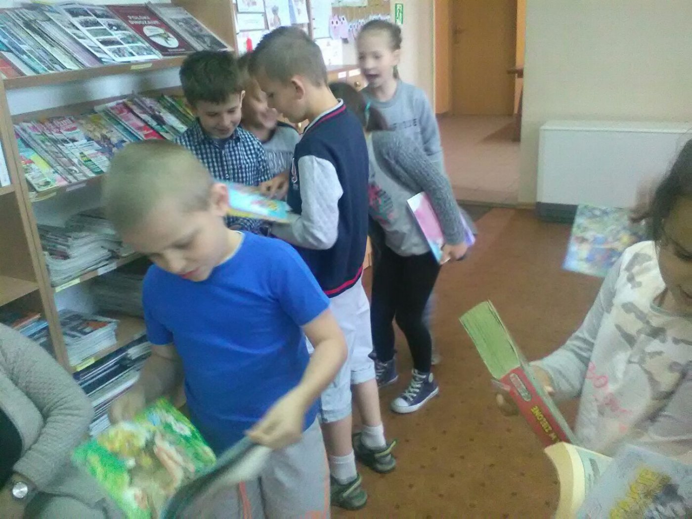 22 maja klasa II odwiedziła bibliotekę w Lisowicach. Dzieci spotkały się ADĄ bohaterką pisemka „Kumpel”, które można wypożyczyć w bibliotece. Uczniowie czytali, rozwiązywali rebusy, kolorowali, wzięli też udział w zabawie ruchowej.