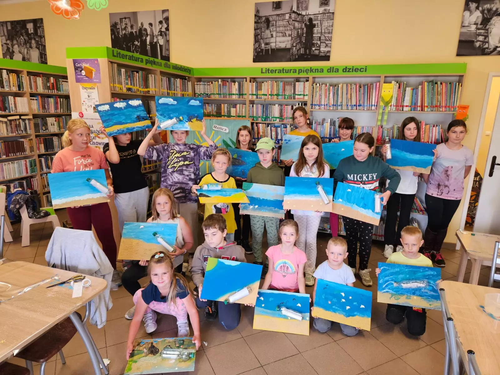 W bibliotece w Kośmidrach, na zajęciach literacko plastycznych, dzieci wysłuchały wzruszającej opowieści Wojciecha Widlaka „TAJEMNICA ZIELONEJ BUTELKI”. Opowiada ona o dziewczynce i chłopcu, którzy znaleźli na plaży tajemnicze prezenty . O tym co z tego wynikło przedstawiają prace namalowane przez dzieci.